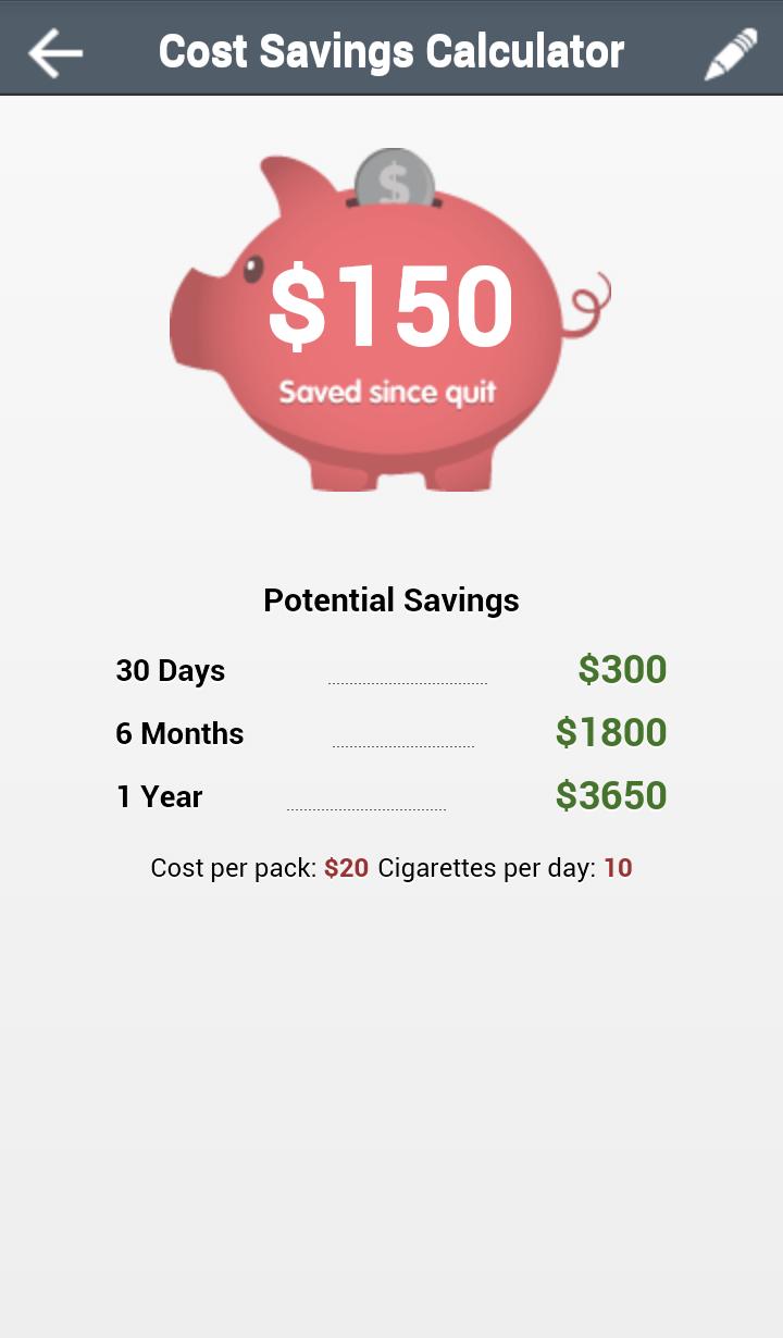 リアルタイムで、実際の使用に基づいて喫煙をやめることで節約したお金を計算します。