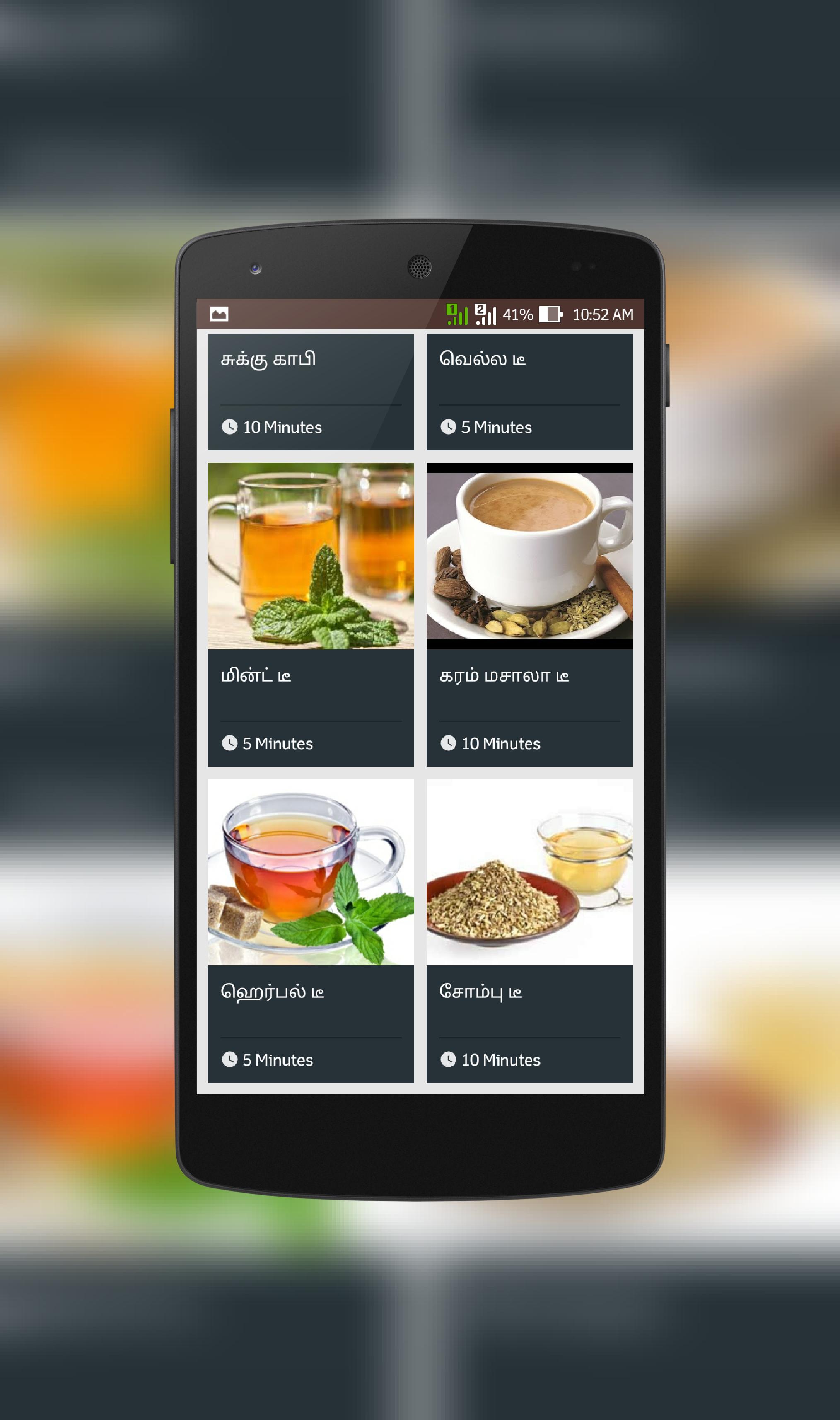 タミル語が頻繁に追加されているティーコーヒーのレシピがたくさんあります。そのため、アプリを評価して共有することを忘れないでください。