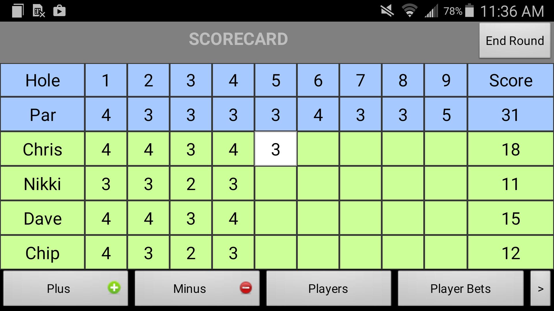 - 各ホールのPARを自動入力し、PARから単純に追加または減算することができます