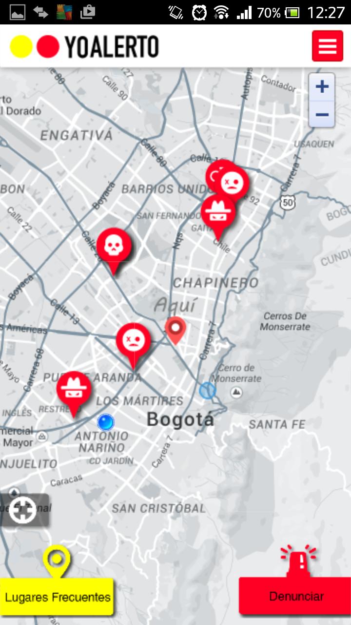 YoAlertoは、ボゴタの他の市民に毎日発生する不安定な行為について警告することを可能にするソーシャルアプリケーションです。