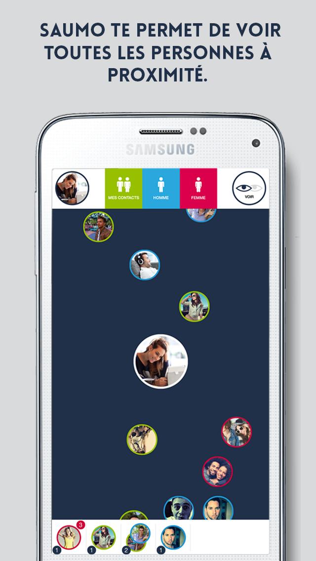 Saumoあなたがあなたの現在の瞬間を完全に生きることを提案します。どうやって?あなたのスマートフォンに具体化することで、あなたが本当にあなたの周りに本当に見ることができるすべての人々を! (100メートルの周辺)