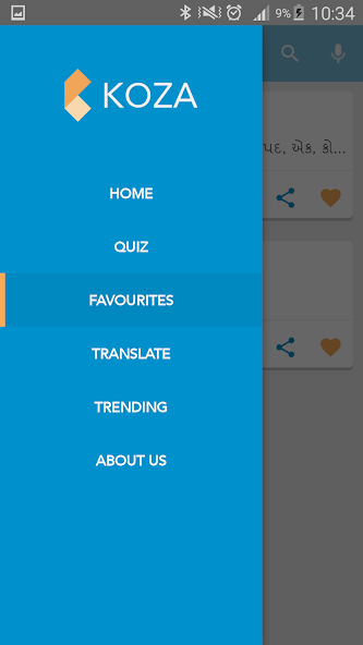 どのスマートフォンを使用していても、 Koza EnglishからGujarati Dictionaryは、言語を学ぶための完璧なサポートを提供します。グジャラート語の言語スキルをテストし、語彙を強化し、このユーティリティアプリを使用して簡単でユーザーフレンドリーな英語からグジャラートへの変換施設を楽しむことができます!