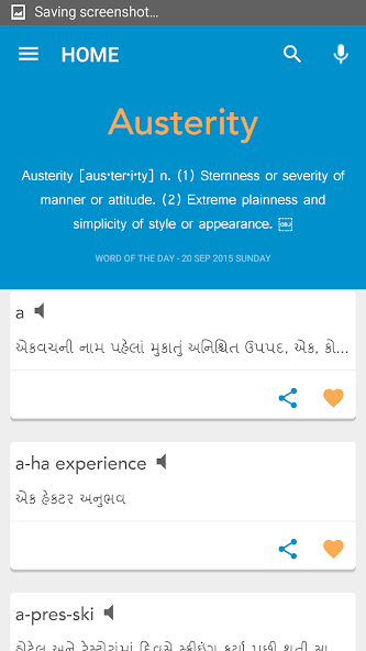 - 設定:テキストサイズの調整、英語/グジャラート語の単語の色、毎日の通知の設定、通知時間の設定、履歴をクリアするためのオプションを設定し、お気に入りをクリアするためのオプションにより、辞書をカスタマイズできます。