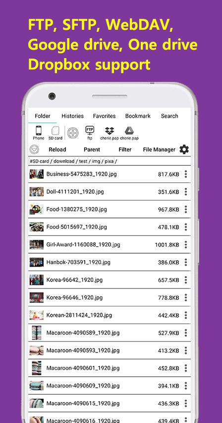 ptp、sftp、smb、dropbox、onedrive、googleドライブ、webdavサポート