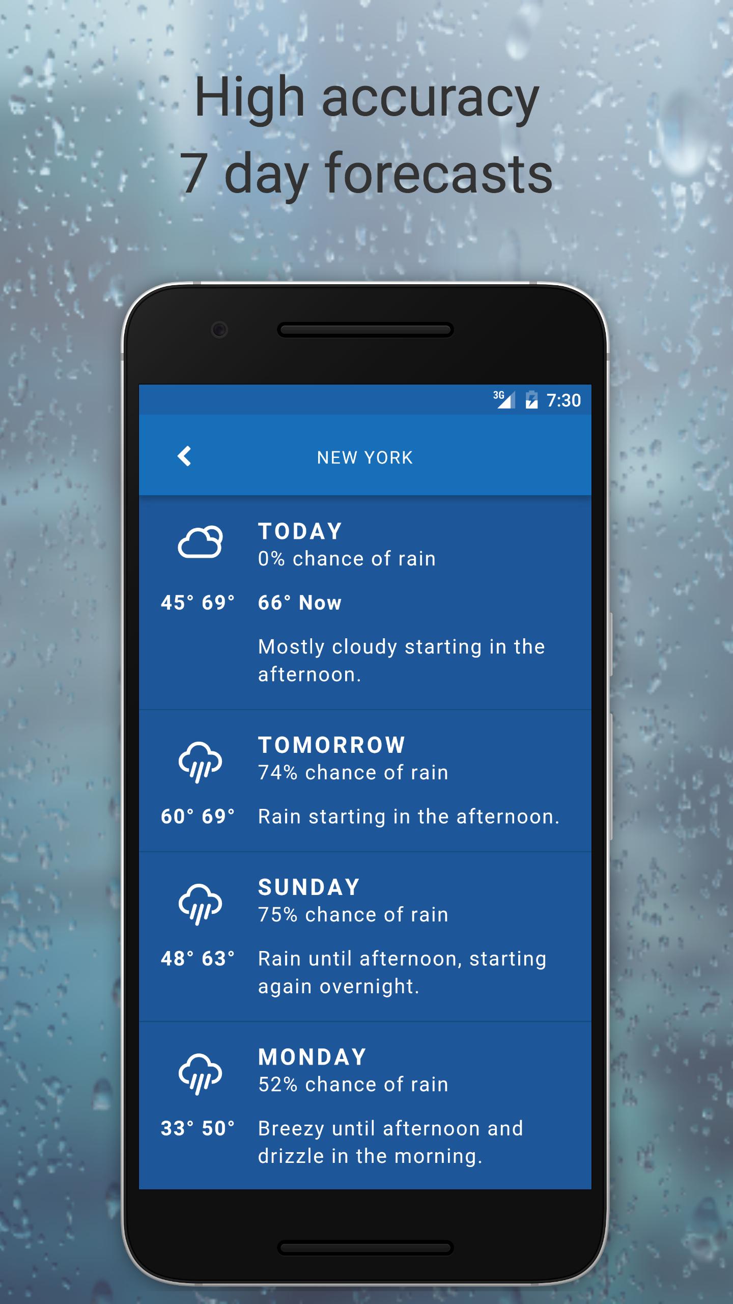 *ズーム可能なタイル張りの天気マップを使用して、米国全体で降雨と稲妻の天気を簡単に表示できます。