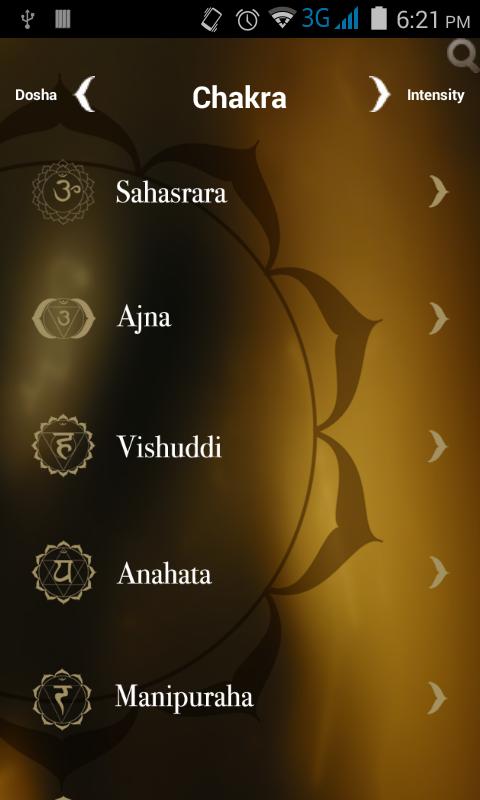 d)アサナの名前(姿勢)検索、位置検索、チャクラ検索、および強度検索のレベル