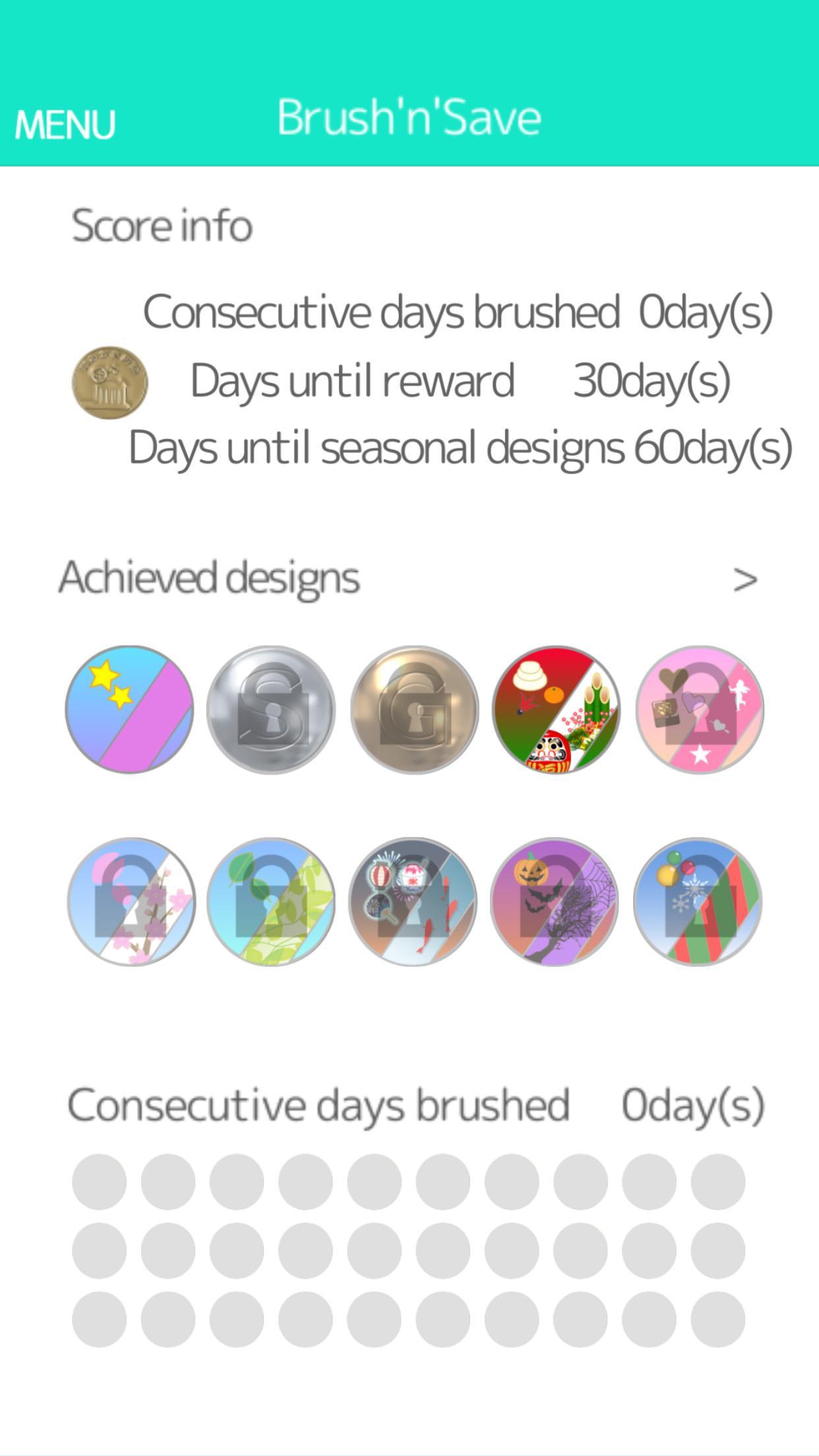 このアプリは、ユーザーが毎日使用することを奨励するように設計されています。スキップせずに一定の日数に到達することにより、ユーザーは特別な金と銀の歯をブラッシングするアイテムのロックを解除できます。これらのアイテムは、実際の歯ブラシ画面でも使用できます。これは、長期的に歯をより楽しくするのに役立ちます。この最新バージョンのアプリを使用すると、ユーザーは「スキップせずに」スコアを家族や仮想の友人と比較し、スキップせずに60日間ブラッシングに追いつくことで、毎シーズンの仮想歯ブラシの新しいデザインを取得できます。