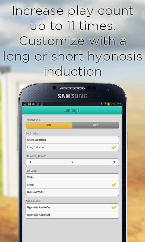 * Each session can be customized with the option to listen to the hypnosis track up to 11 times