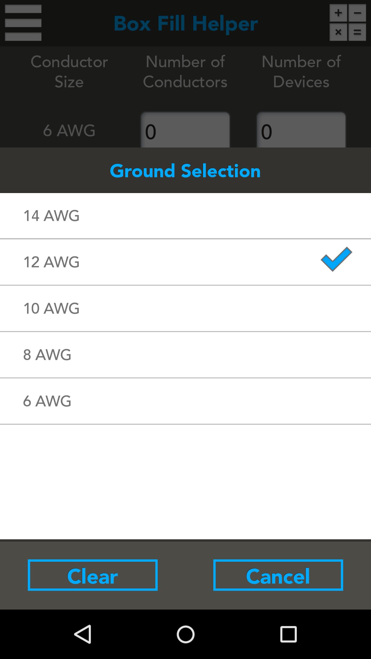 注:このアプリケーションは、導体6 AWG -18 AWGおよびそれに関連するデバイス向けです。 4つのAWGを超えるジャンクションおよびプルボックスについては、ジャンクションボックスヘルパーアプリケーションをダウンロードしてください。ジャンクションボックスヘルパーは、NECの314.28あたりのボックスサイズを出力します。