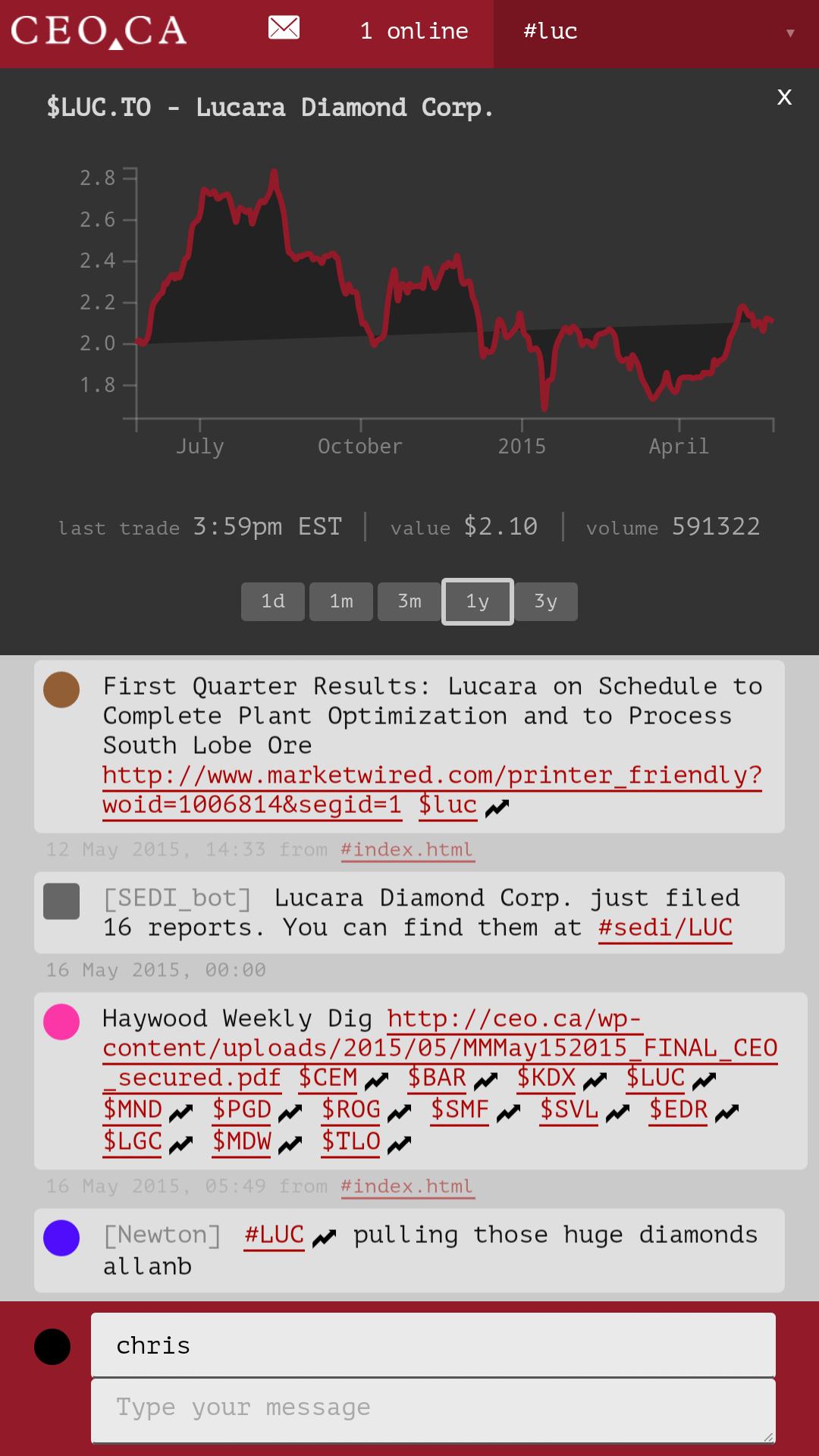 CEO.CAチャットは、投資家に情報を通じて競争上の優位性を提供します。カナダで最も急速に成長しているCEOおよび株式市場のプロにアクセスして、アイデアを通知して共有します。