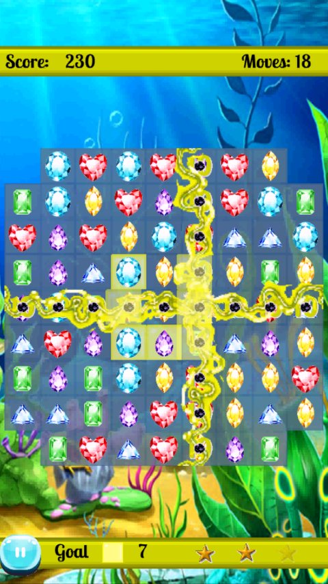 あなたの目標は、宝石をスワイプしてGreat White Sharkマッチ 3 フォーメーションを作成するだけで、宝石を攻撃してダッシュすることです。