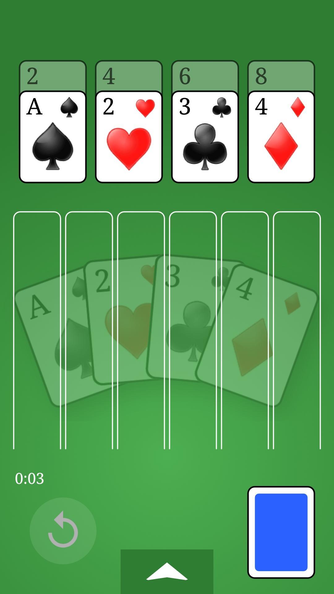 ゲームは4つの高いスタックから始まり、カード:A、2、3、および4のカードがあります。