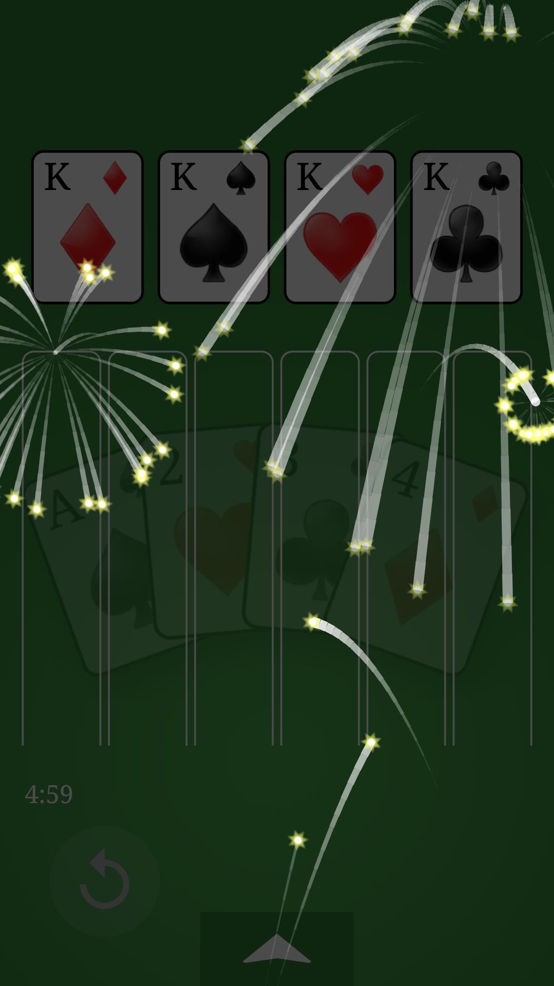 ゲームの終わりに、Aと5は4番目のスタックで上昇し、J、Q、Kは最初のスタックで上昇し、9とKは4番目のスタックに登ります。