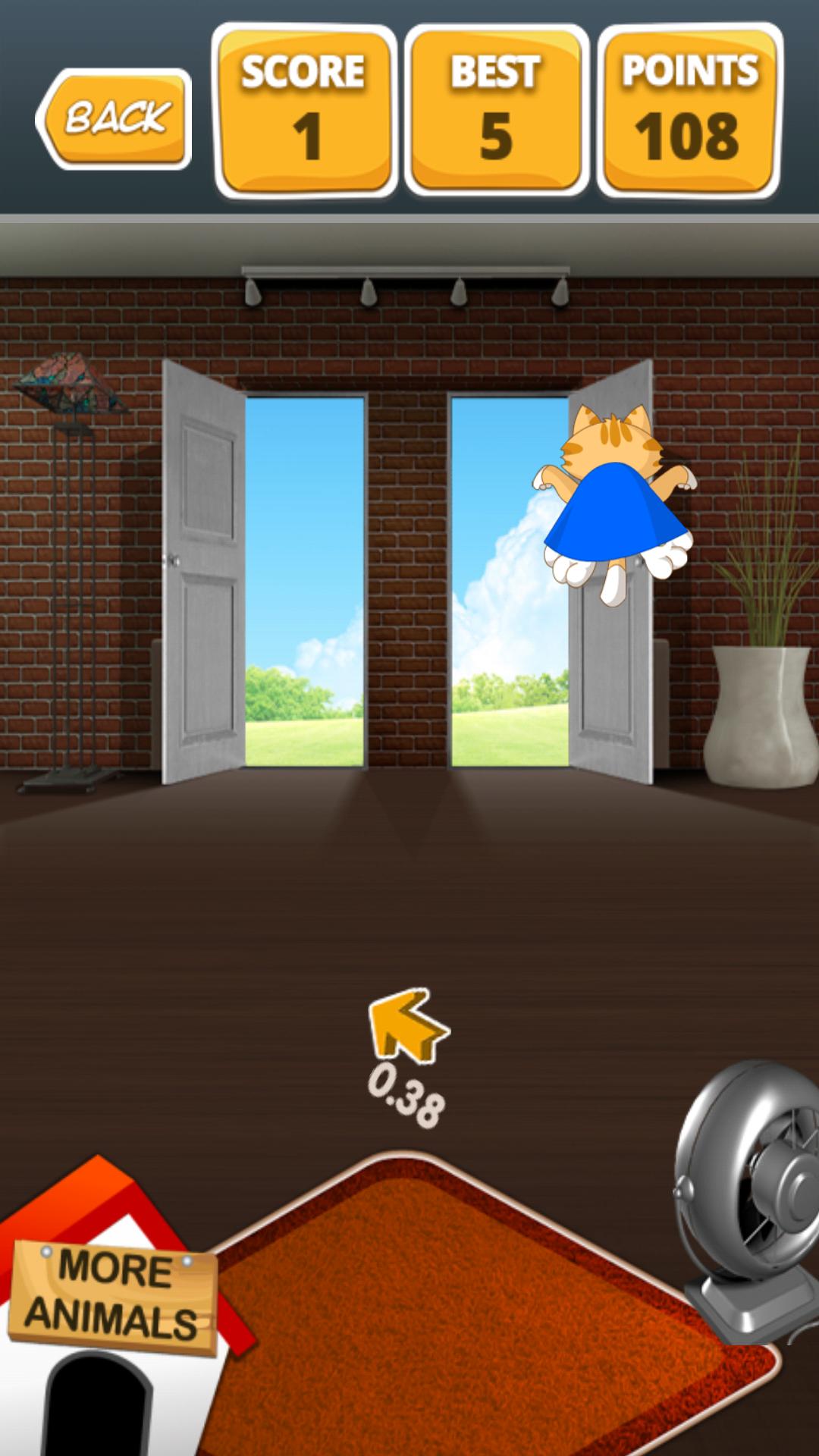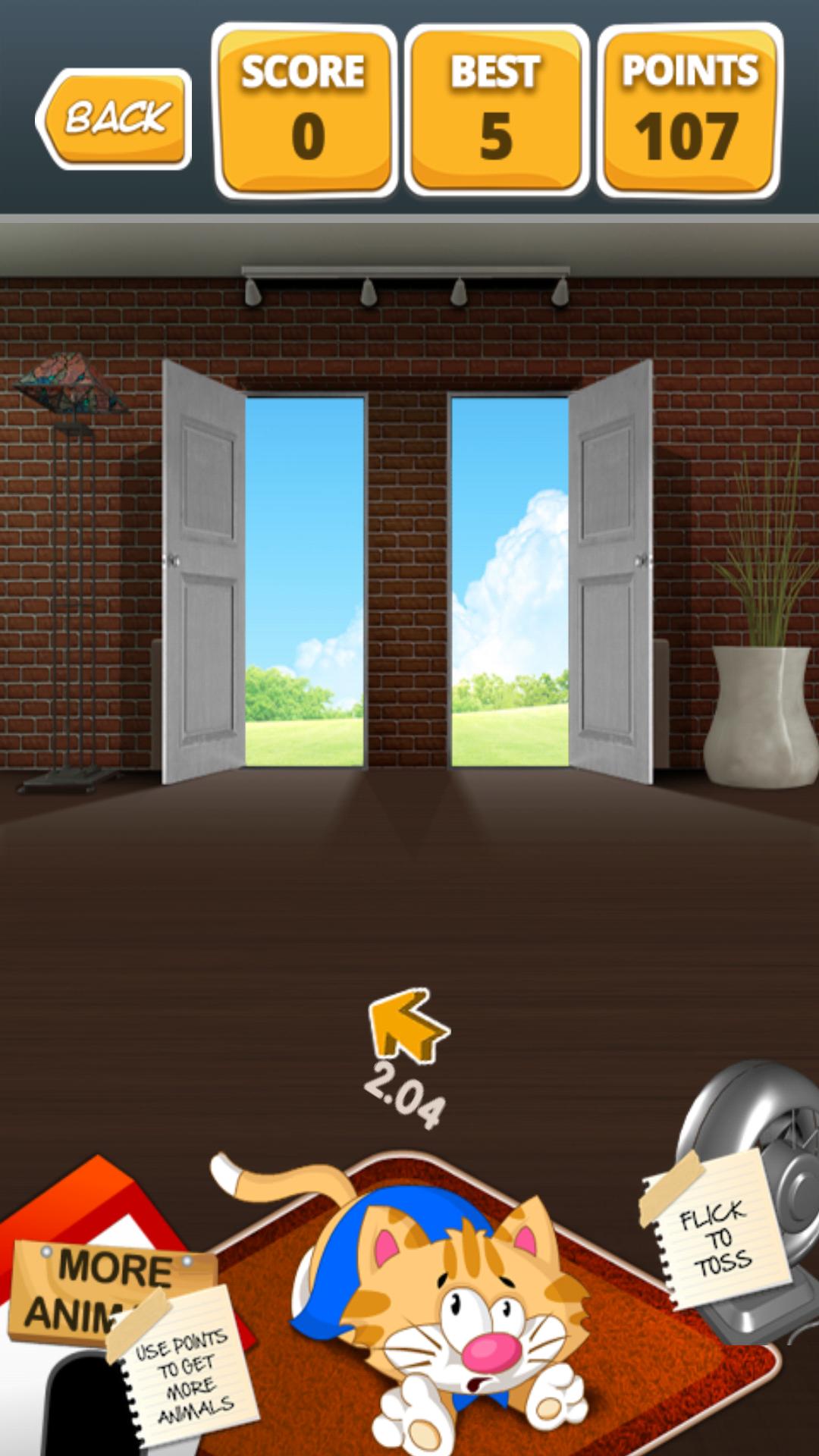 あなたがあなたの家から動物を投げるたびに、あなたはポイントを獲得します。ポイントを使用して、さまざまな動物を購入して投げる。レベルが難しいほど、獲得するポイントが増えます!