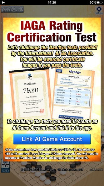 *このアプリは国際的なAI GO Associationによって認定されています
