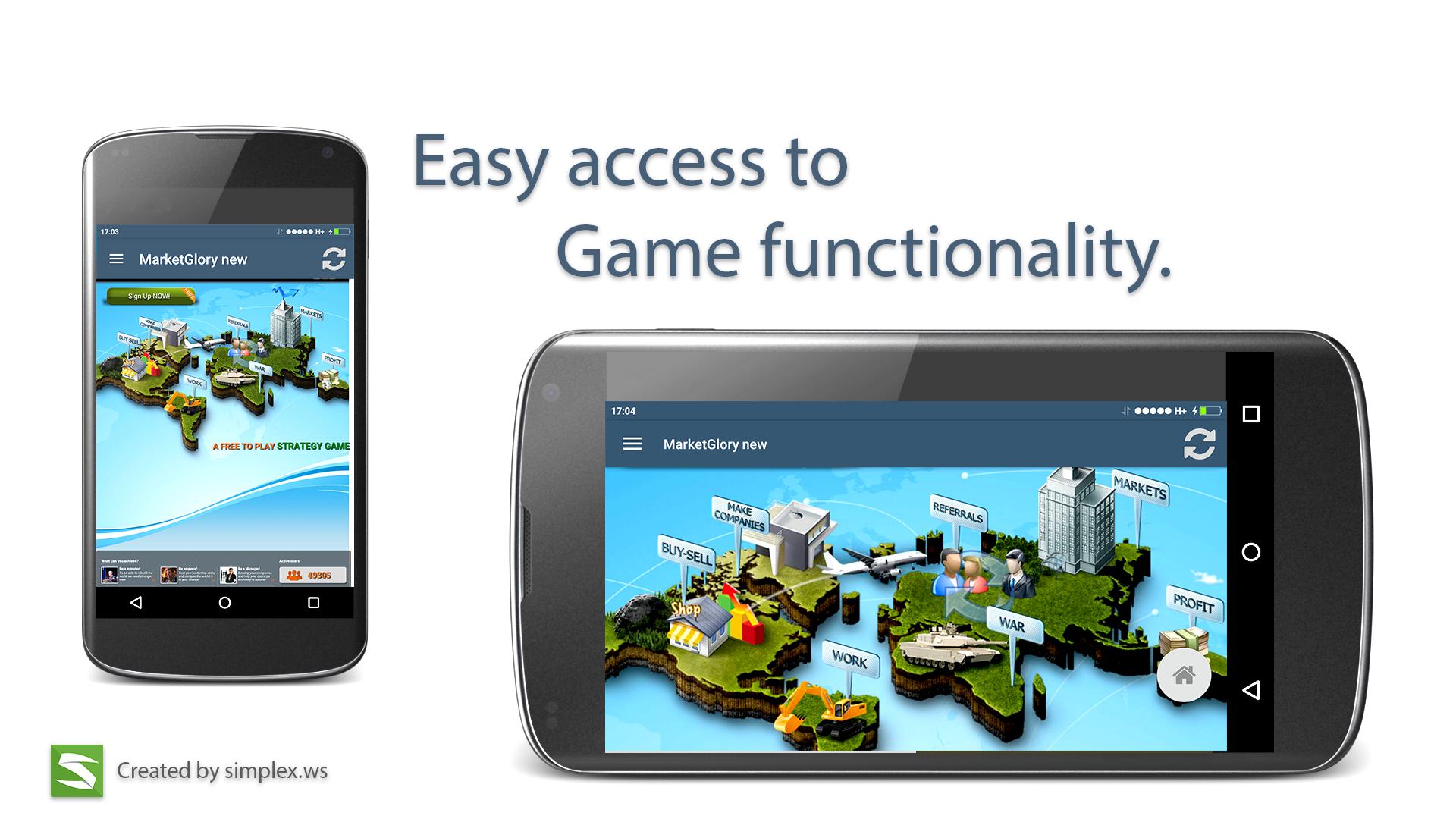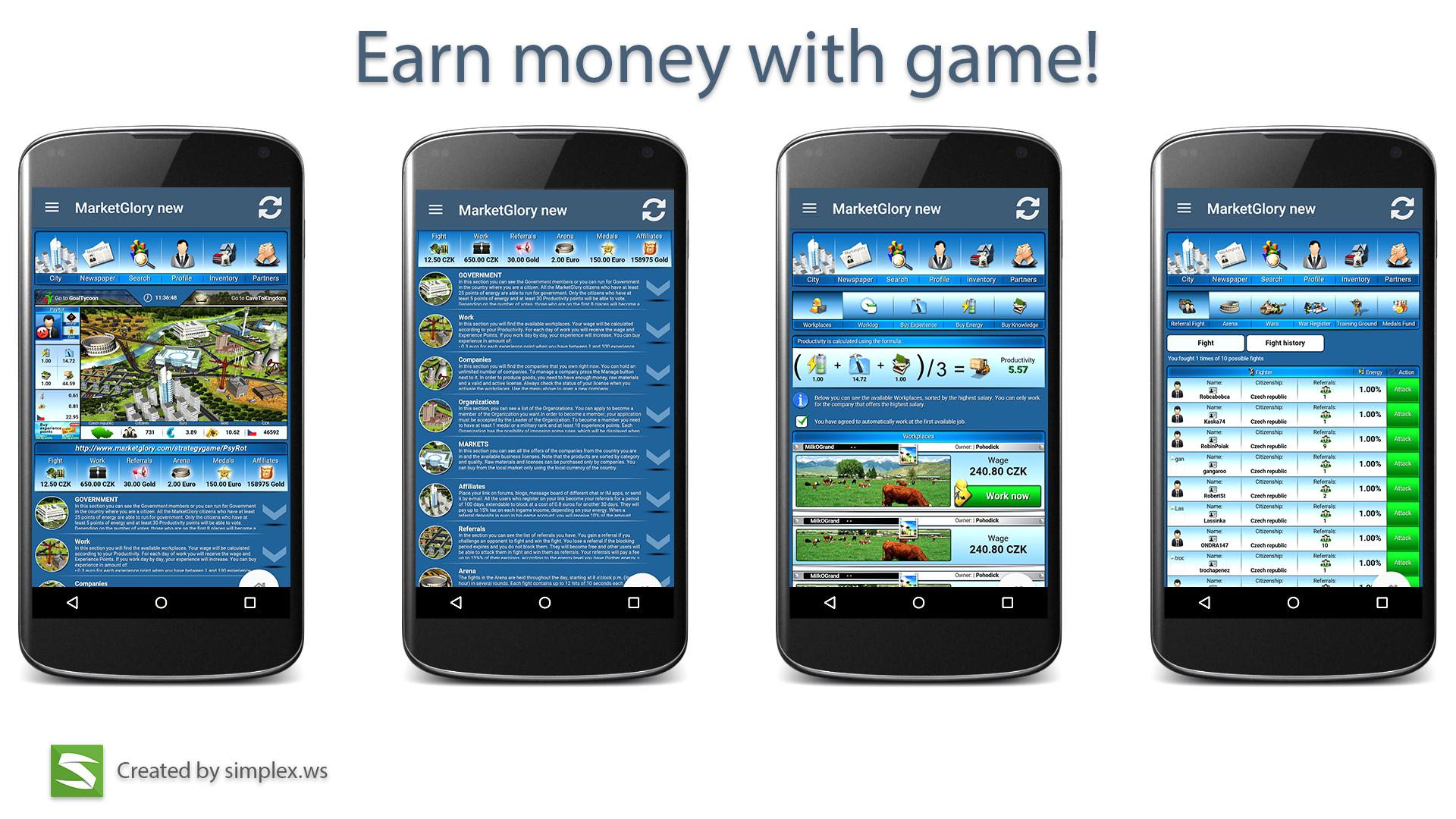 MarketGloryは、すべての仮想通貨を実際のお金に交換できる大規模なオンラインブラウザゲームです。それは、あなたの地元の通貨をあなたの利益に使用できる経済的、政治的、社会的、軍事的シミュレーターです。 MarketGloryコミュニティの各プレーヤーには、仕事、企業の設立、政府のために運営され、紹介を推奨し、軍事階級を獲得し、独自の組織を構築する機会があります。