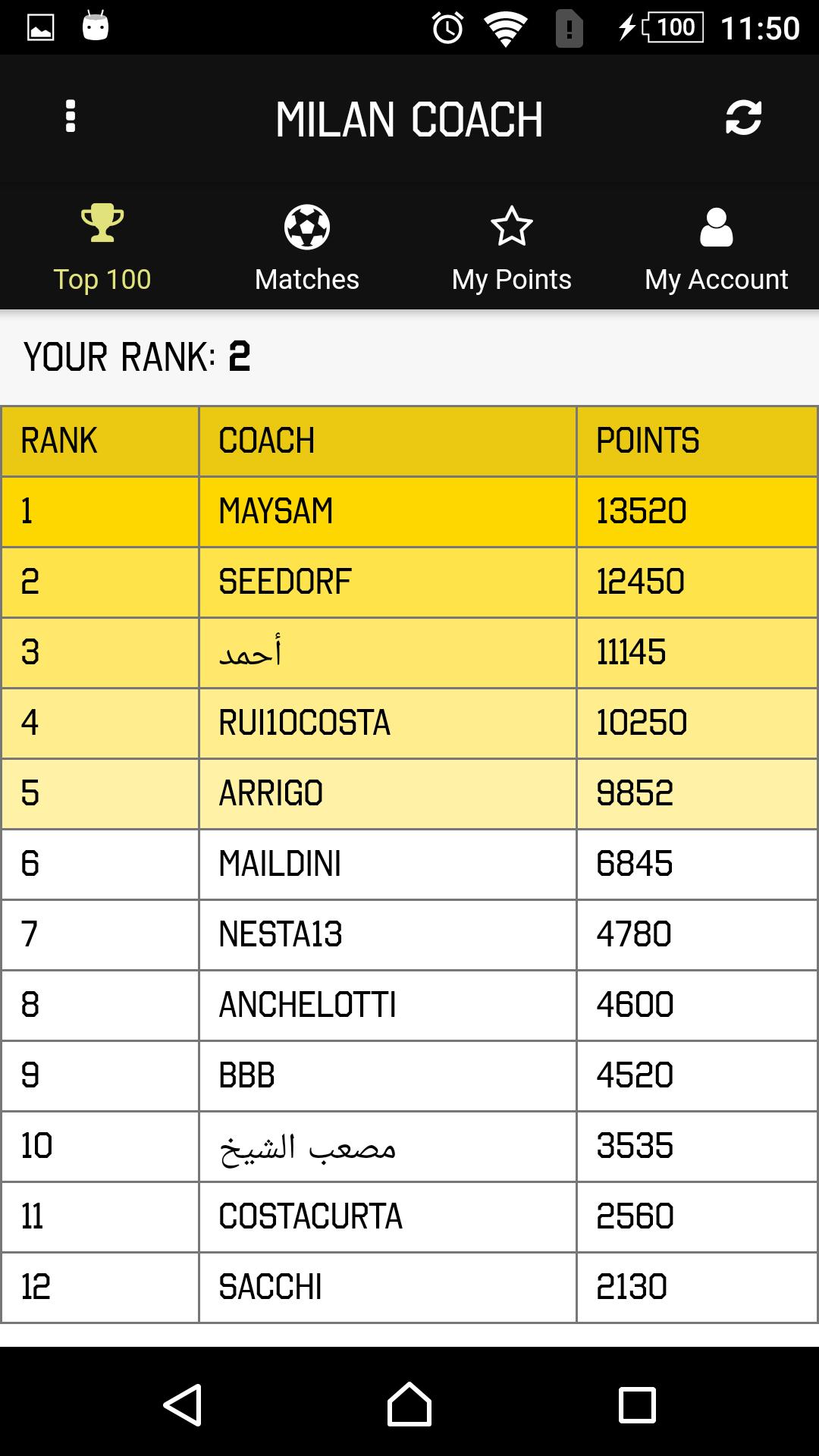 あなたはACミランクラブのコーチです。ポイントを獲得するためにあなたのチームを選んでください!