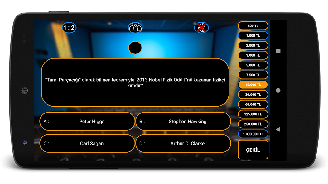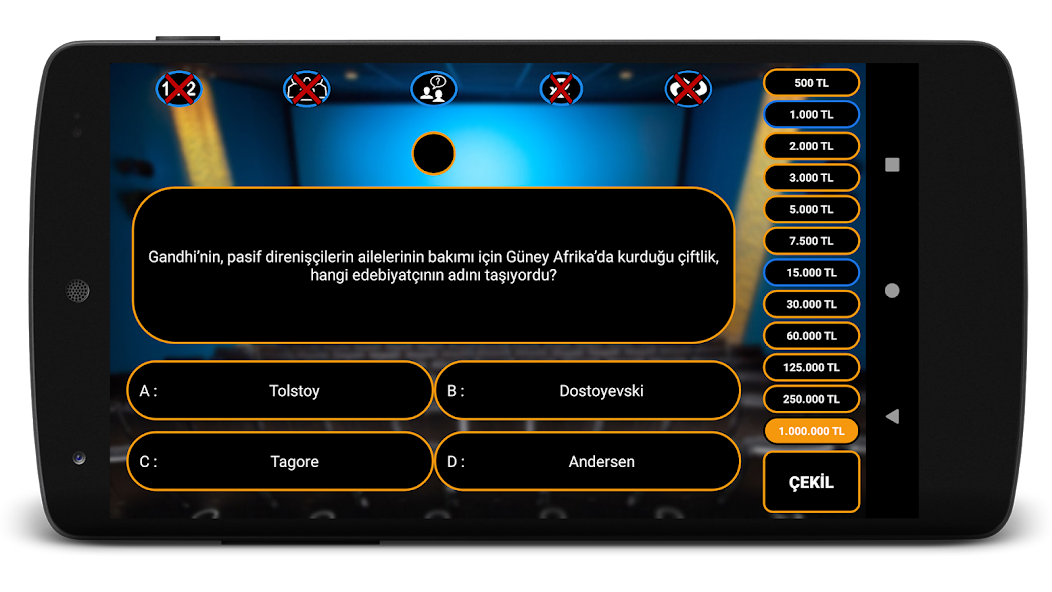 私たちは、最も野心的なキム億万長者のゲームでここにいます。アプリケーションは、あなたが知っている億万長者コンテストの非公式のAndroidバージョンです。億万長者のクイズ。トルコで知られている競争を思い起こさせる最初のゲーム。コンペティションゲームの勝者!現在のゲームの中で最新のもの、最高のインテリジェンスの質問、そして競争を楽しんでいます。知識競争