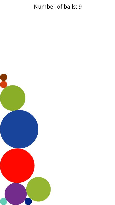 加速度計によって制御されるBouncy balls 。カスタマイズ可能またはランダム化可能なサイズと色を使用します。摩擦、タッチアクションなどの設定。