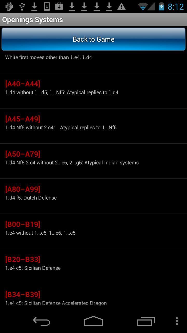 Chess Openingsの簡単なインターフェイスを使用すると、1830年以上にわたってすぐに学習できます。これは無料のアプリで、30を超えるオープニングがあります。他の1800以上のオープニングを購入できます!新しい開口部を学びながら、チェスの完全なゲームをプレイしてください!エコの分類によって組織された各オープニングは始まり、通常のチェスゲームのように再生されます。黒または白としてプレイし、再生またはテイクバックの動き - ヒント機能は各位置から利用可能な最良の動きを示し、間違ったピースを演奏したり、違法な広場に移動したりするときに警告します。 Chess Openings人気のあるドラゴンのバリエーションの多くを含む、シチリアの防衛の100以上のオープニングバリエーションがあります。英語のオープニングの70のバリエーションに加えて、オープニングプロは、ニムゾ・インディアン、ロイ・ロペス、2つのナイツ・ディフェンス、フォー・ナイツ・ゲーム、スコッチ・ゲーム、フランス、ピルコ、カロ・カン、カタロニアなどの多くのバリエーションを特徴としています。合計1800以上のオープニング!現在のエコで開口部のリストを表示するには、ボトムツールバーの[開口部]ボタンをタップします。他のエコ範囲の開口部を表示するには、そのメニューの上部にあるオープニングシステムボタンをタップします。開口部は、オープニング名またはバリエーションの任意の部分を入力することで検索できます。オープニングの代数チェス表記の任意の位置から開始することもできます。白、黒、またはその両方としてプレイできます。また、データベースに独自のオープニングを簡単に追加することもできます。再生モードには2つのモードがあります。学習と探検家です。学習モードでは、選択したオープニングを逸脱せずにプレイすることを強制します。 Explorer Modeを使用すると、動きの制限なしに通常のチェスゲームをプレイでき、移動するピースに基づいて利用可能な開口部が表示されます。学習モードでは、オープニングが完了した後、CPUとの対戦を続けたり、同じ開口部を再び再生したり、別のオープニングを選択したりできます。そしてもちろん、CPUに対するさまざまな代替と位置を探索するために、いつでも動きを再生できます。 Chess Openingsゲームを改善する非常に貴重な学習ツールです。