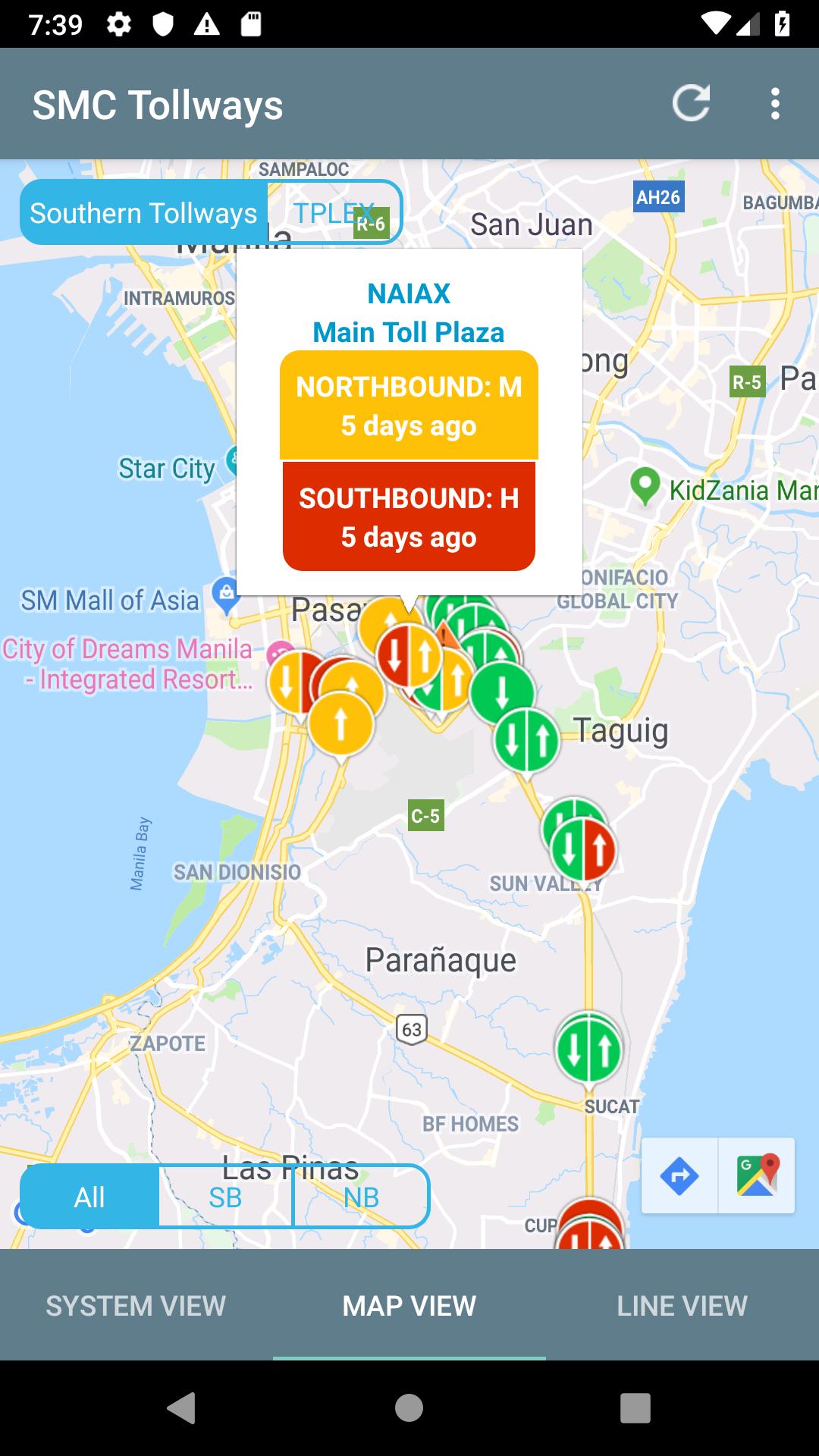 SMC Tollways Skyway, Naiax, Slex, Star 및 Tplex에서 교통 상황을 제공합니다.