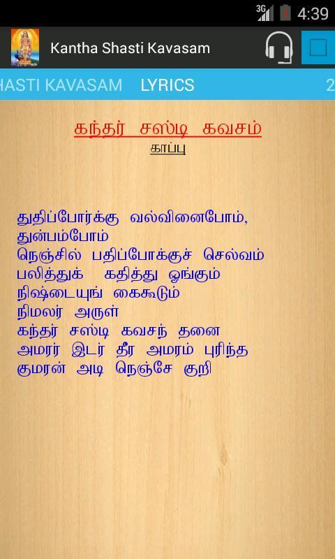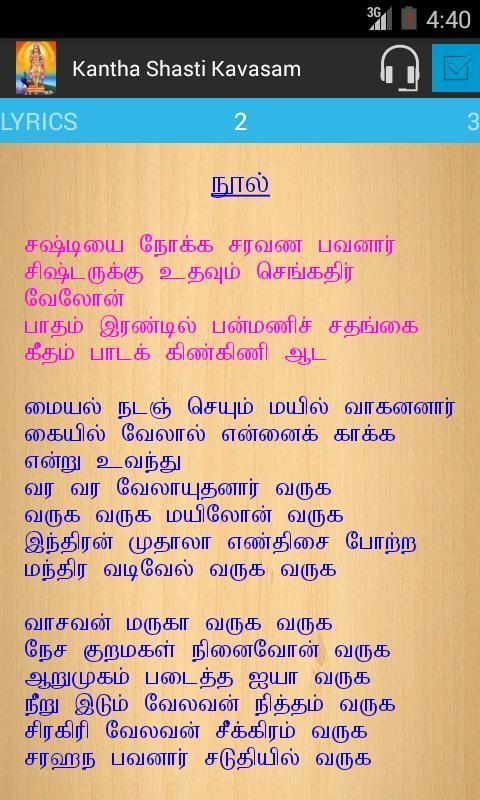2) kantha Shasti Kavasam 의 내재 된 mp3 노래의 유무에 관계없이 가사
