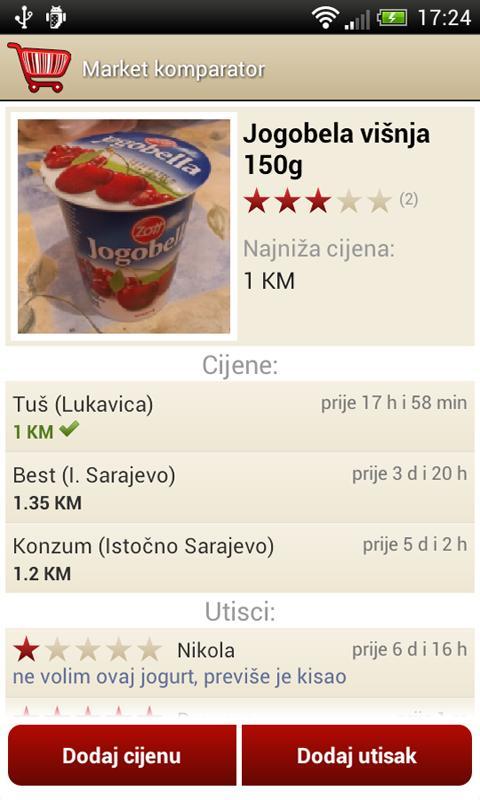 ' Market komparator '는 구매하려는 제품의 품질과 가격을 확인하도록 설계되었습니다. 응용 프로그램에는 인터넷 연결이 필요합니다. 항목에 대한 바코드를 빠르게 스캔하는 사용자는 고객이 의견과 평균 품질 등급을 검토하고 자신의 인상을 남길 수 있습니다. 또한 최저 가격을 제공하는 등록 된 시장에 대한 정보와 품목의 사진도 제공됩니다. 사용자가 제공하는 모든 정보는 단일 데이터베이스에 보관됩니다.