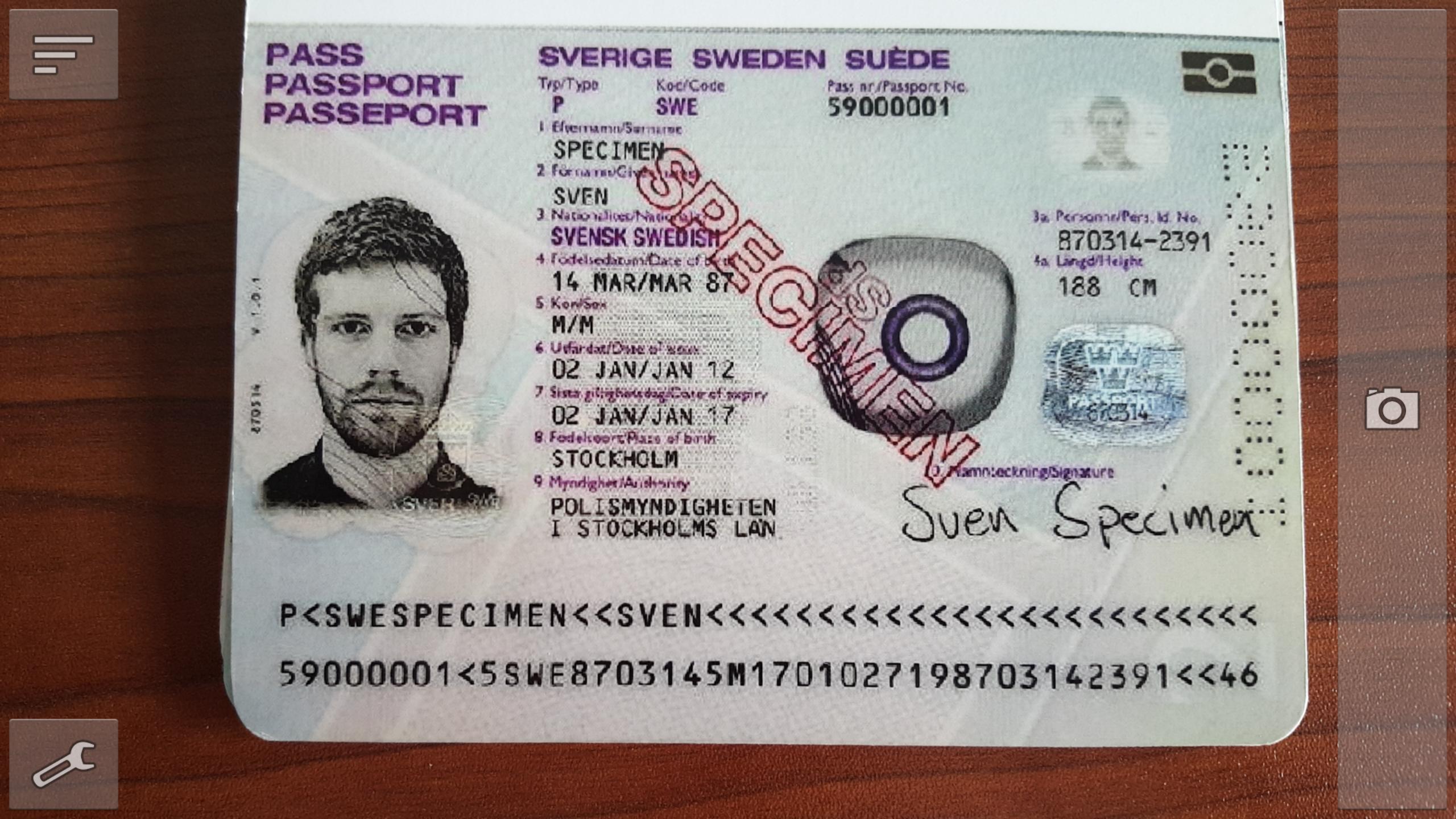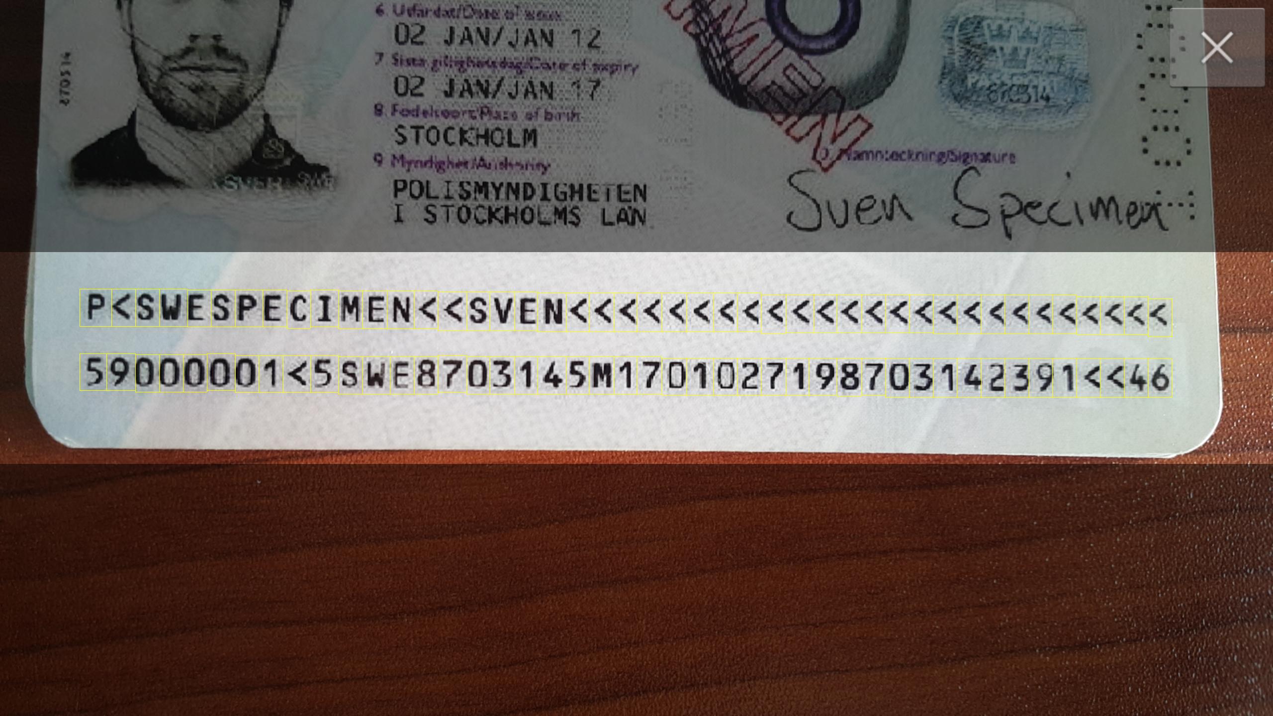 MRZ Recognition 애플리케이션은 기계 읽을 수있는 영역 (MRZ)이있는 문서를 인식하기위한 Smart 3D OCR MRZ 기술의 기능을 보여줍니다. 우리는 기술을 사용하여 VideoStream -Smart 3D OCR에서 장치의 재설정만을 사용하여 모바일 장치의 카메라로 캡처 한 사진 및 비디오에 대한 데이터를 인식 할 수 있습니다 (원격 서버로 데이터를 보내지 않고). 이 응용 프로그램은 ISO/ICAO (IEC 7501-1/ICAO 문서 9303 ISO) 표준을 준수하는 문서의 고속 인식을 지원합니다.