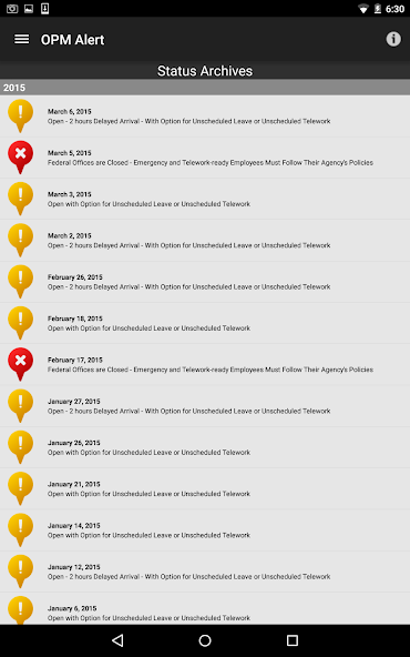 OPM Alert 는 미국 인사 관리국 (OPM)의 공식 운영 상태 앱입니다. 이 무료 앱은 워싱턴 DC 지역의 연방 정부 사무소의 현재 운영 상태를 실시간으로 볼 수 있습니다.