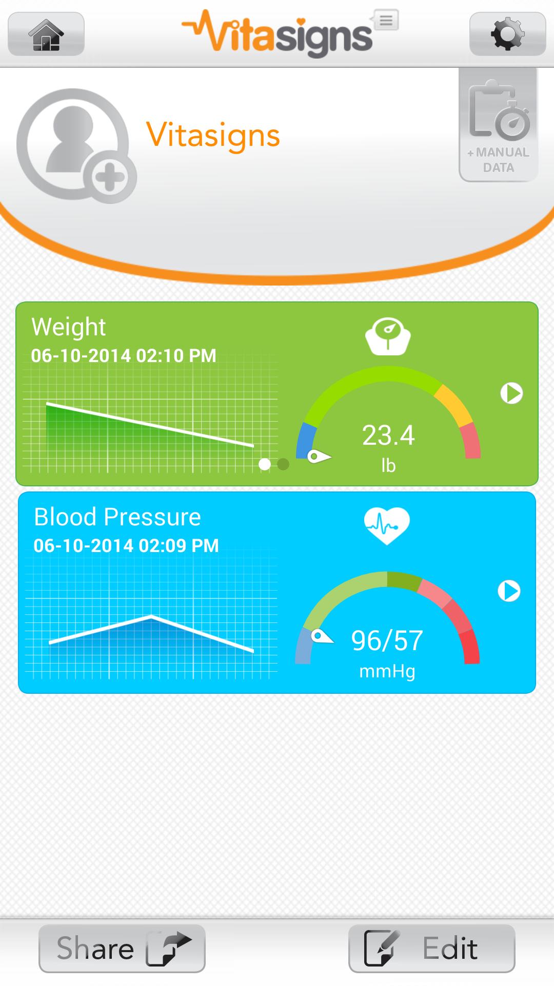 무료 Vitasigns 앱은 건강 인식을 쉽게 만듭니다. 체중, 체지방 비율 및 체질량 비율 및 체질량 지수 (BMI)를 추적하거나 맥박수와 혈압을 모니터링하려면 Vitasigns 앱은 빠르게 스마트 루틴의 필수 부분이됩니다. 표준 장치에서 수동으로 데이터를 입력하거나 앱을 Vitasigns Bluetooth Smart Digital Body Analyzer 또는 혈압 모니터와 페어링하면 판독 값이 자동으로 기록됩니다.