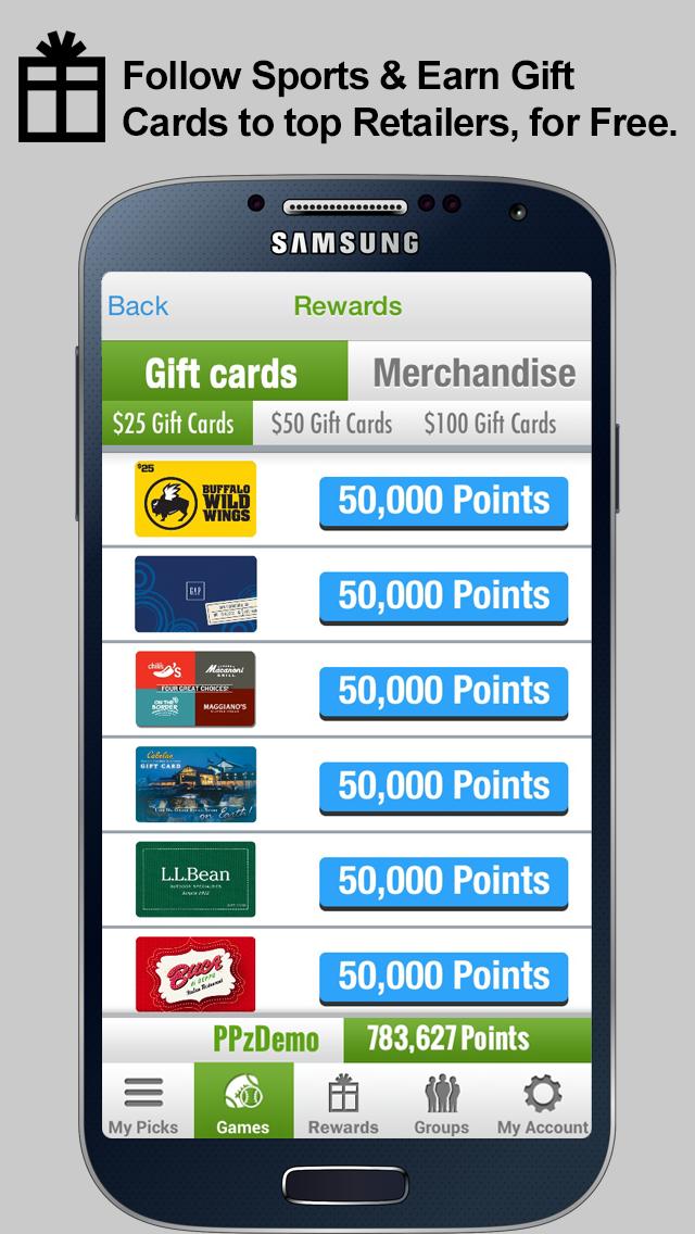 Cabela 's, Best Buy, Macy's, Sports Authority 및 Starbucks 및 기타 훌륭한 상품 및 팀 의류를위한 기프트 카드와 같은 광범위한 실제 보상에 대한 포인트를 사용하십시오. 더 많은 보상이 정기적으로 추가되었습니다.