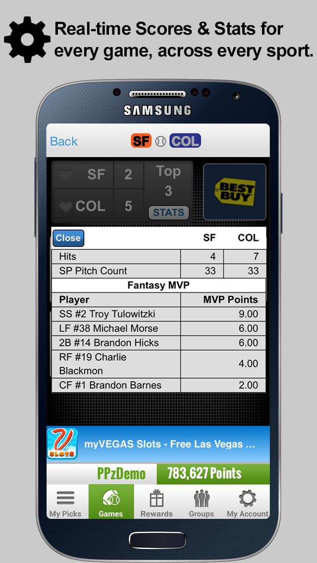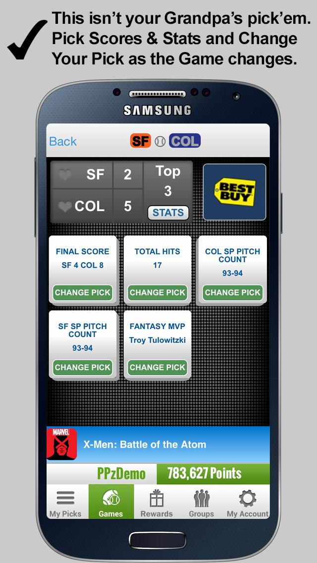 PickPointz 는 진정한 스포츠 팬을위한 최고의 모바일 스포츠 앱입니다. 축구, 농구, 야구 또는 하키의 최종 점수 또는 통계를 선택한 것에 대한 보상을 받으십시오. 픽을 만들고, 게임을 유지하고, 게임이 바뀌면서 게임이 끝날 때까지 선택할 수 있습니다. 올바른 점수 또는 통계를 일찍 예측하고 더 많은 포인트를 얻습니다. 그렇게 간단합니다.