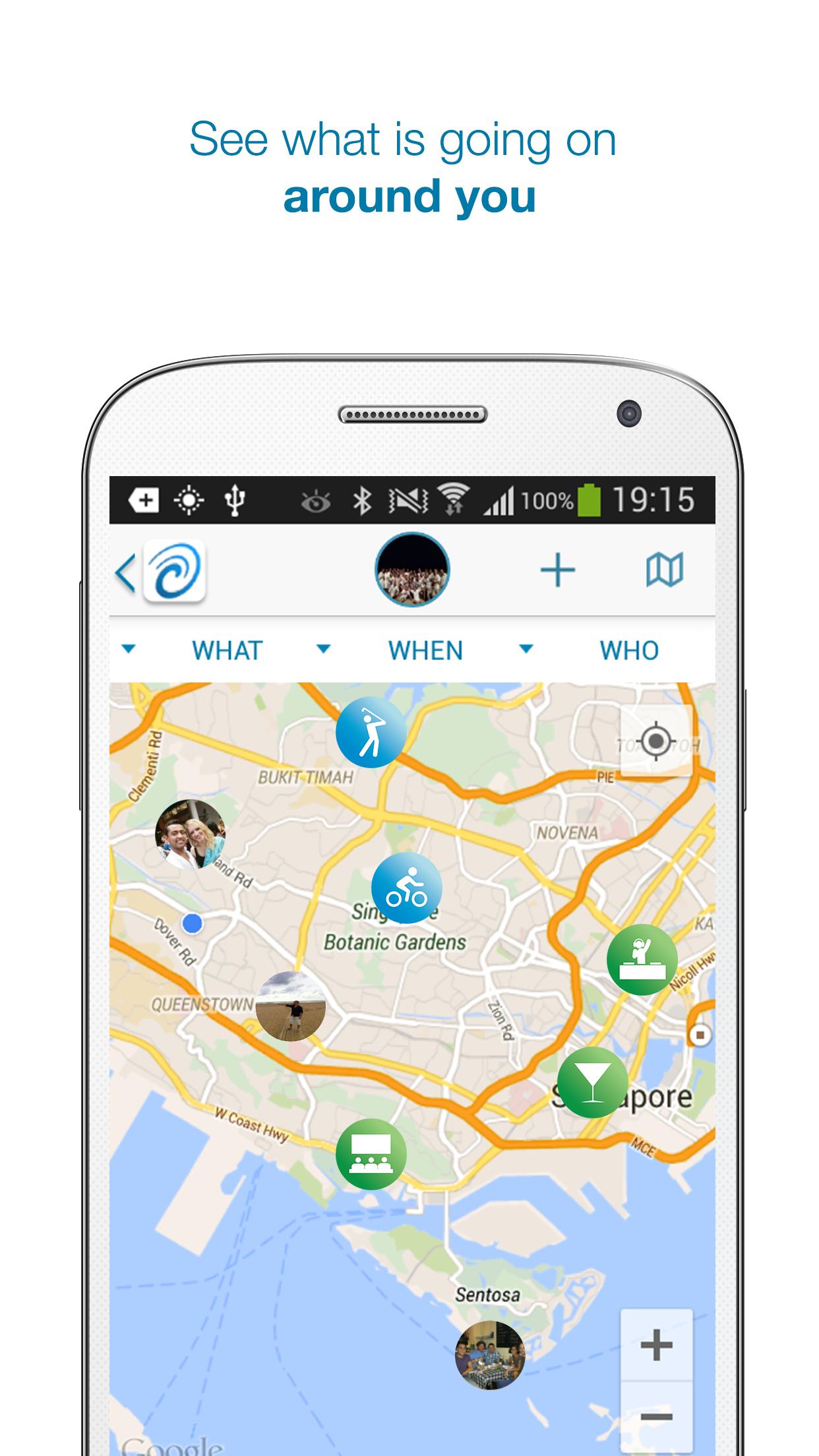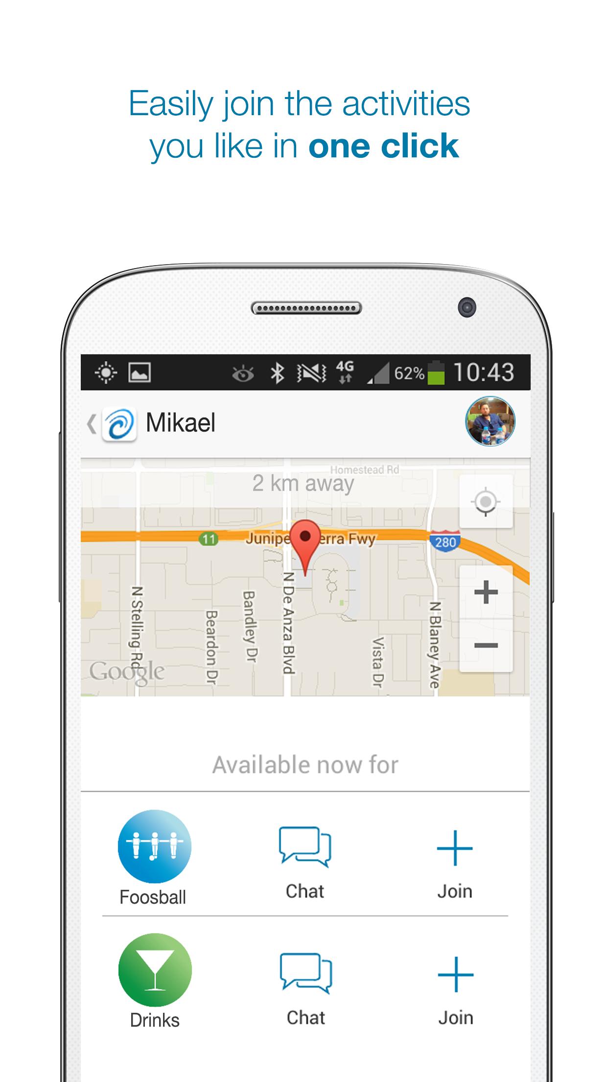 주변에서 무슨 일이 일어나고 있는지 확인하고 한 번의 터치로 좋아하는 활동에 참여하십시오!