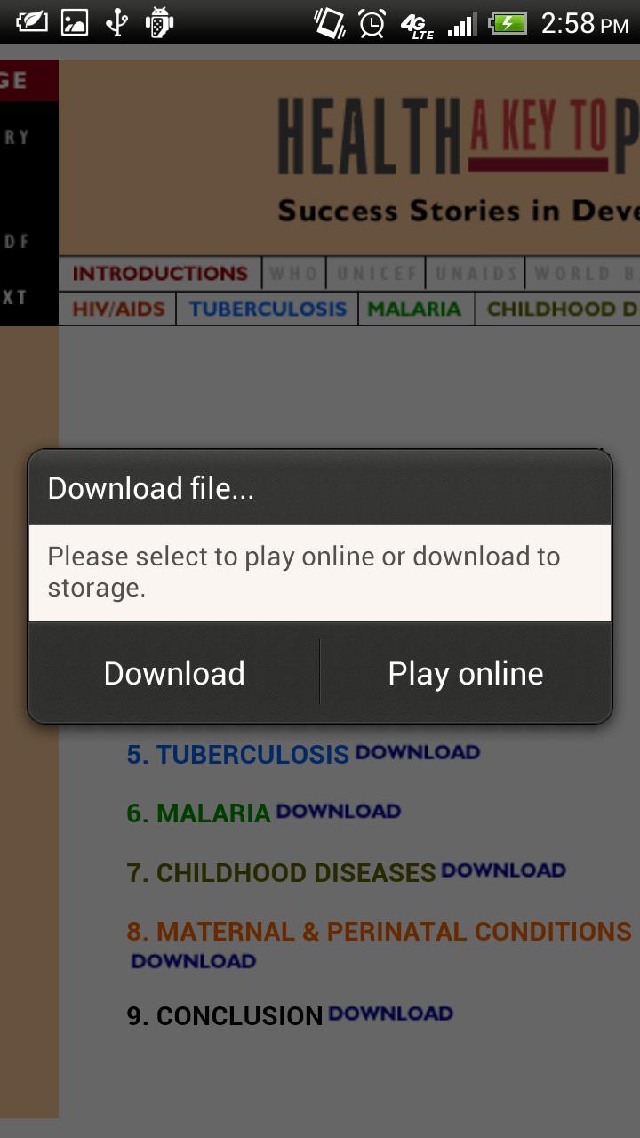 HTC Sense의 경우 옵션은 "다운로드 파일"대화에서 "온라인 재생"입니다.