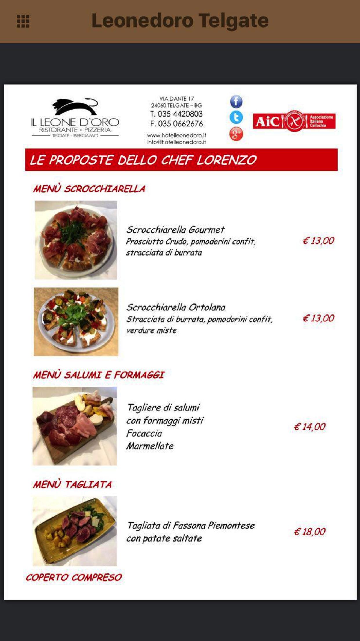 Leone Doro Ristorante Pizzeria Hotel Gluten Free