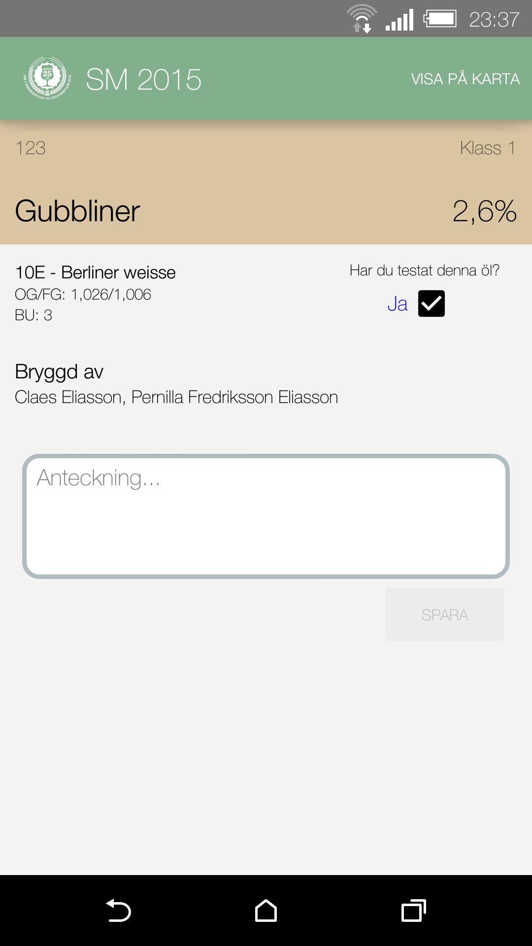 SM은 스웨덴 홈 브루어스 협회 (SHBF)가 1 년에 한 번 조직합니다. 2016 년에는 Malmö의 Baltic Hall에서 개최됩니다.