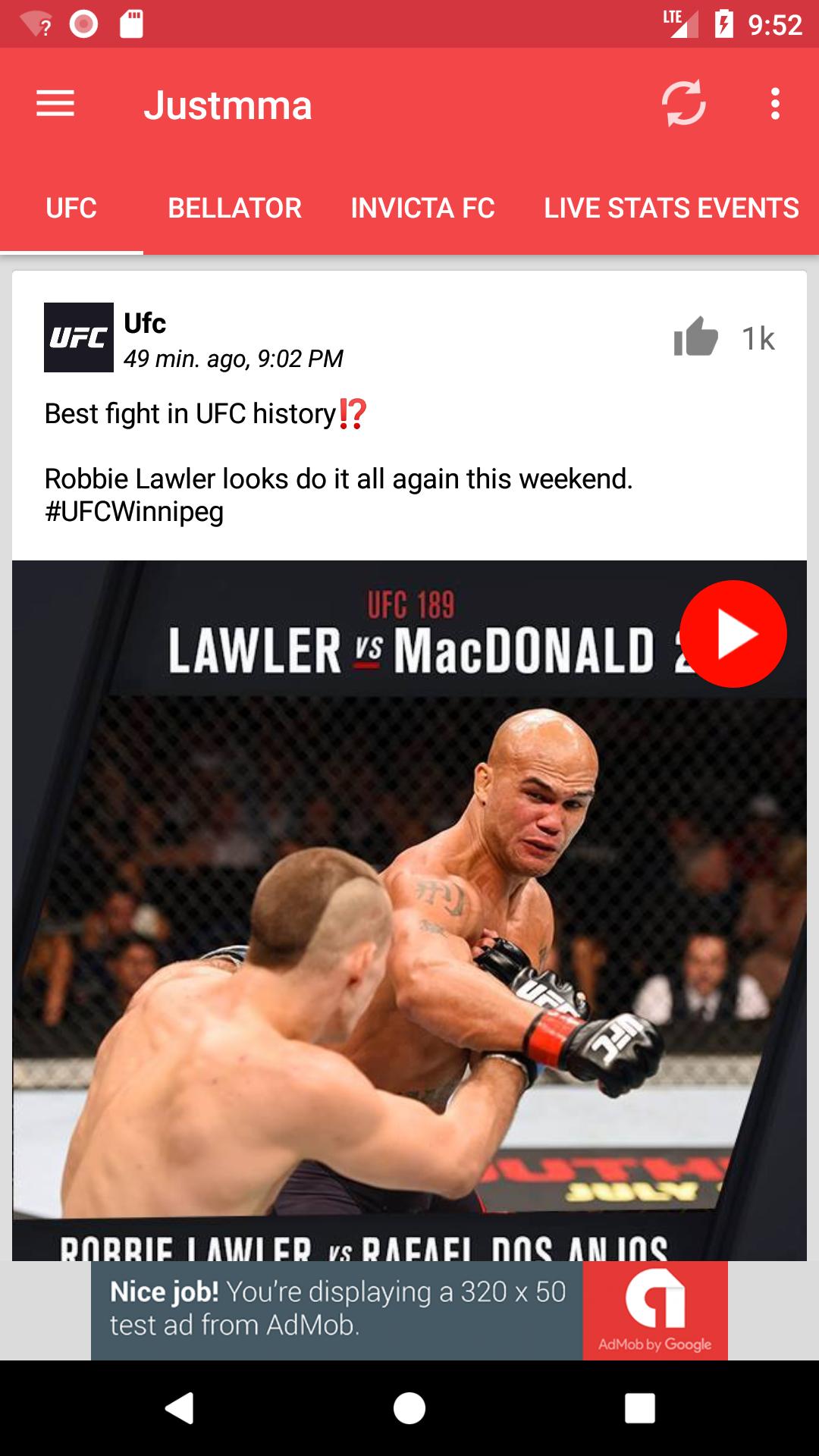 JUSTMMA 앱은 라이브 UFC 싸움 이벤트 중에 실시간 푸시 알림을 보냅니다. 팬인 사람은 해설과 전투 사이의 광고 중에 트랙을 잃는 것이 쉽다는 것을 알고 있습니다.