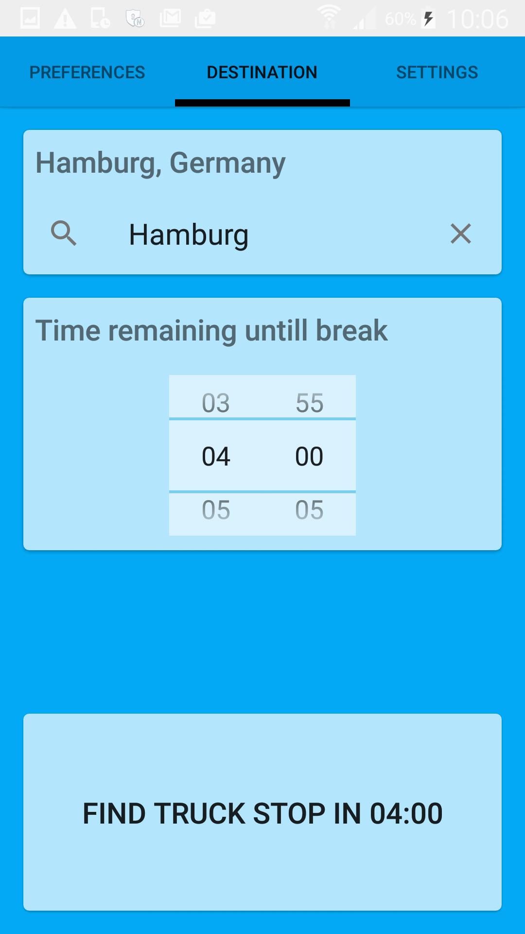 위치 근처에서 트럭 정류장을 검색하고 휴식을 취해야 할 때 타이머를 추가하도록 선택할 수 있습니다. 호송대는 휴식 시간을 기준으로 목적지로가는 경로에서 트럭 반점을 찾을 수 있습니다.