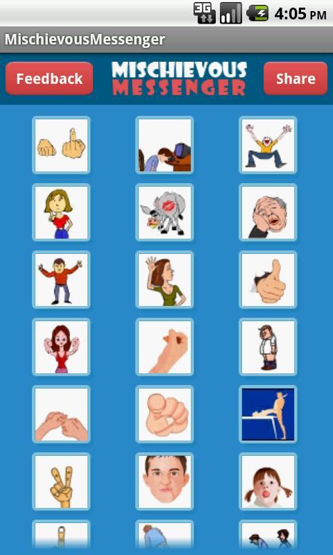 Mischievous Messenger 열고 많은 재미있는 표현 중 하나를 선택하고 간단하게 문자를 보내십시오!