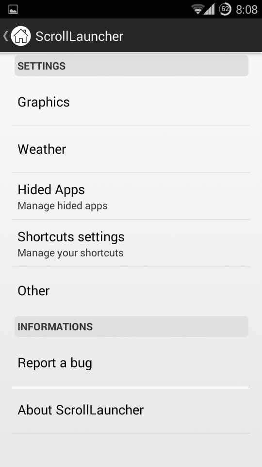 이것은 Scroll Launcher 베타입니다. 자신의 위험에 따라 사용하십시오! 개발자가 애플리케이션을 개선하도록 도와 주려면 보고서 보내기 보고서 보내기 " Scroll Launcher -> 버그보고"로 이동하여 양식을 작성하십시오.