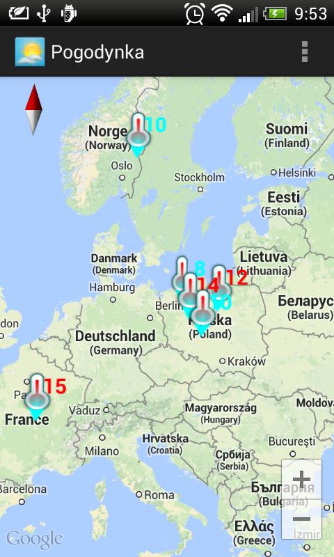 응용 프로그램을 사용하면 전 세계의 날씨 정보를 확인할 수 있습니다. 맵의 어느 곳에서나 클릭하면 응용 프로그램이 날씨에 대한 필요한 정보를 공개합니다. 마커를 클릭 한 후 날씨 정보 화면의 자세한 내용.