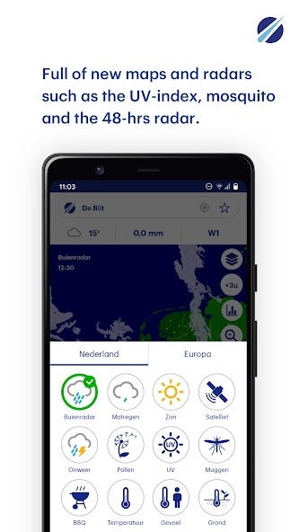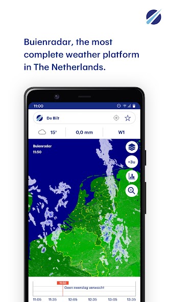 Buienradar 앱은 Android 폰 및 태블릿에 사용할 수 있습니다. 레인 그래프가 포함 된 편리한 위젯을 사용하면 앱을 열지 않고도 비가 예상되는지 확인할 수 있습니다!