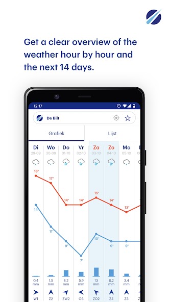 온도, 느낌 온도, 시간당 밀리미터의 비의 수, 비와 풍력 (Beaufort)에 대한 예측과 같은 좋아하는 위치 (해외!)에 대해“Komende uren in”(다음 8 시간 날씨 예측)에서 개인화 된 날씨 정보를 찾을 수 있습니다.