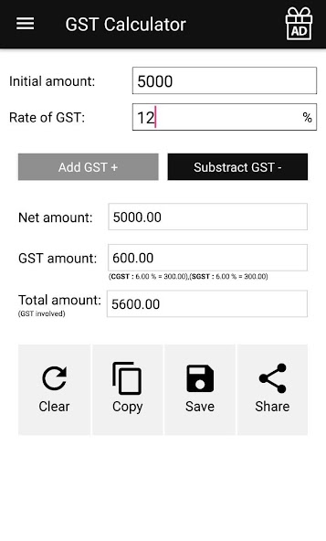* GST 또는 세금 추가 :- +3%, +5%, +12%, +18%, +28%, +1, +2, +15, +0.1, +40.8 등과 같은 GST 또는 세금 수를 계산하십시오.