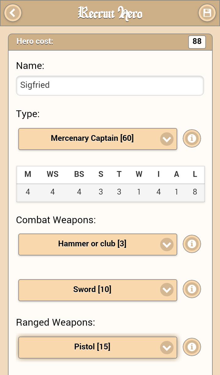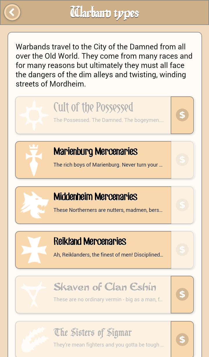 각 전투 전에 자신의 Mordheim Warband를 쉽게 만들고 편집하거나 새로운 캠페인을 시작하는 첫 번째 응용 프로그램 :