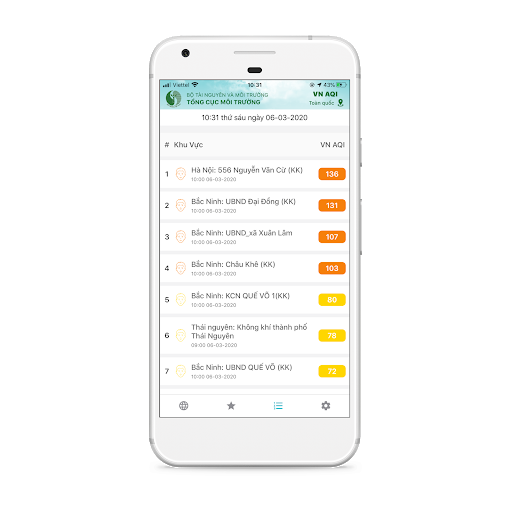일반 환경부에 대한 긴급한 요청에 따라 미디어, 웹 사이트의 항공 환경 품질에 대한 정보를 포함하여 환경 품질이 게시되었습니다.보다 효과적인 정보로 전송하기 위해 베트남 환경 관리국은 모바일 장치에 대한 VN Air 응용 프로그램을 계속 개발하여 전국적으로 대기 질에 대한 온라인 정보를 커뮤니티에 게시하고 있습니다.