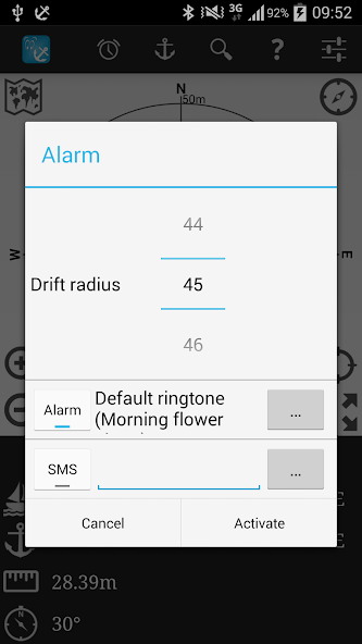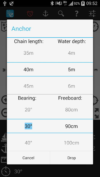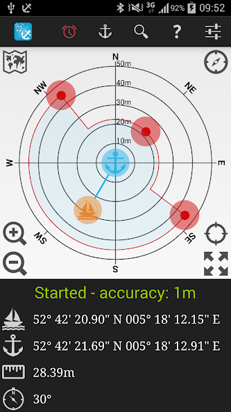 이것은 앵커 시계 응용 프로그램이며 사용하기가 매우 쉽습니다. 앵커를 떨어 뜨리고 보트를 준비한 후에는 앱을 간단히 활성화 할 수 있습니다. 앵커의 정확한 좌표를 알 필요는 없으며, 베어링과 앵커까지의 거리 만 있으면됩니다.