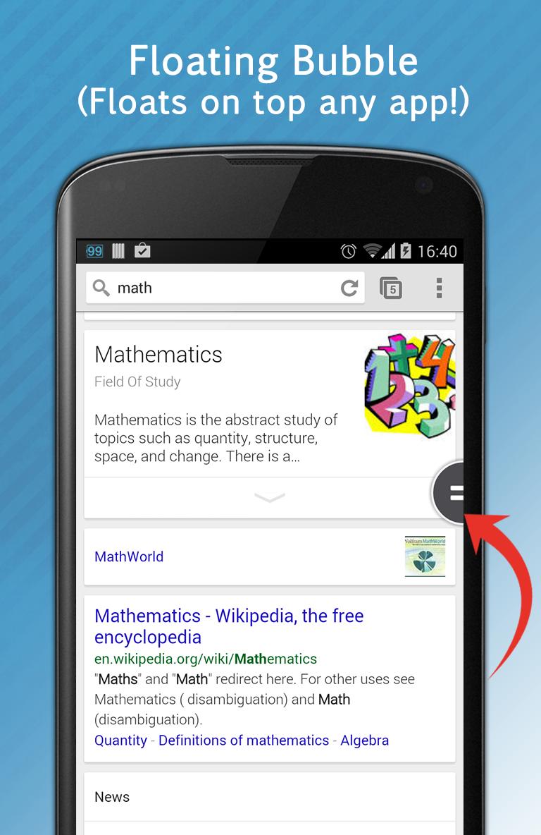 Floating Calculator 간단하고 우아한 계산기 앱으로 화면 전면에 떠 다니고 있습니다.