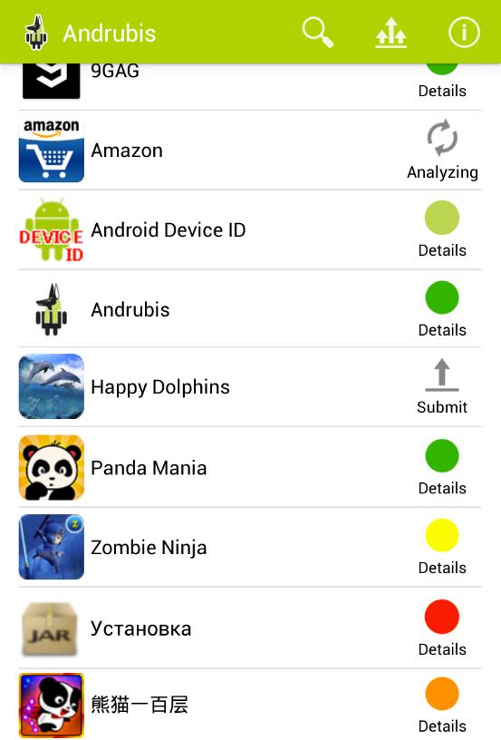 Andrubis는 Andrubis Analysis Service의 모바일 사용자 인터페이스입니다. Andrubis 샌드 박스에서 Android 앱을 실행하고 파일 액세스, 네트워크 액세스, 암호화 작업, 동적 코드로드 및 정보 유출을 포함한 동작에 대한 자세한 보고서를 제공합니다. Andrubis 동적 분석 외에도 정적 분석을 수행하여 앱의 요청 및 중고 권한, 활동, 서비스 및 외부 라이브러리에 대한 정보를 얻습니다. 동적 및 정적 분석 결과를 바탕으로 Andrubis 0에서 10 사이의 악의적 인 점수 (악의적 인) 형태의 앱과 관련된 위험을 평가합니다. 이 평가는 10 만 명 이상의 알려진 양성 및 악의적 인 응용 프로그램에서 배운 기능을 기반으로하며 정기적으로 재교육합니다.