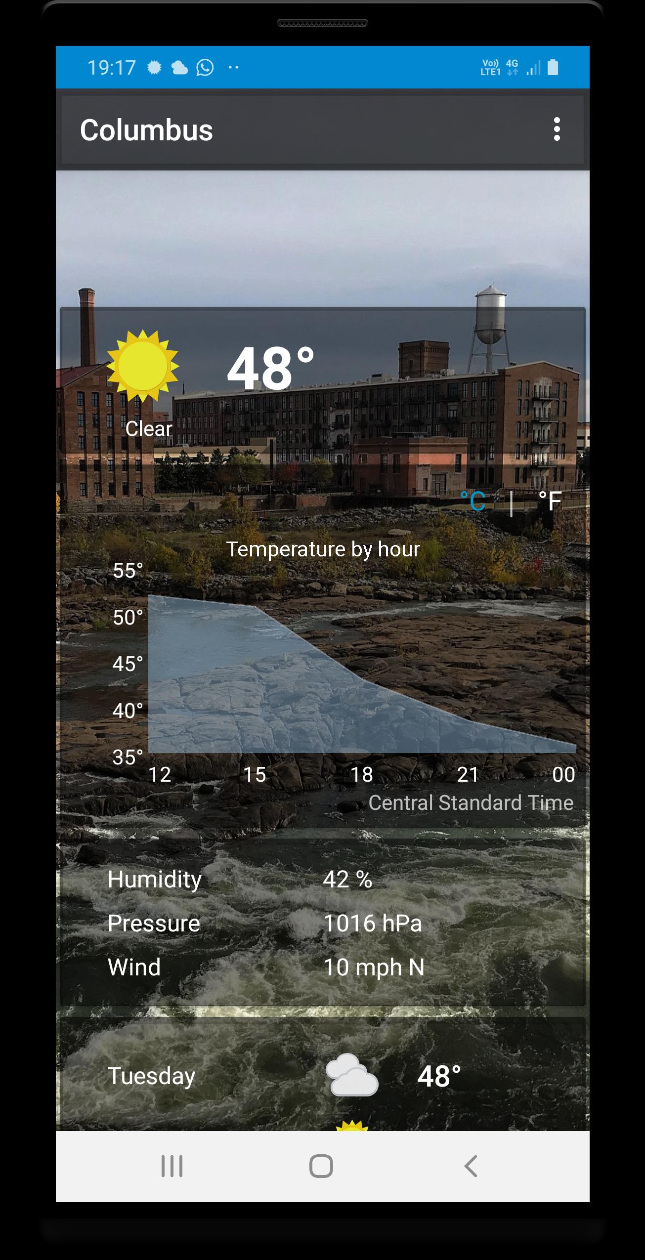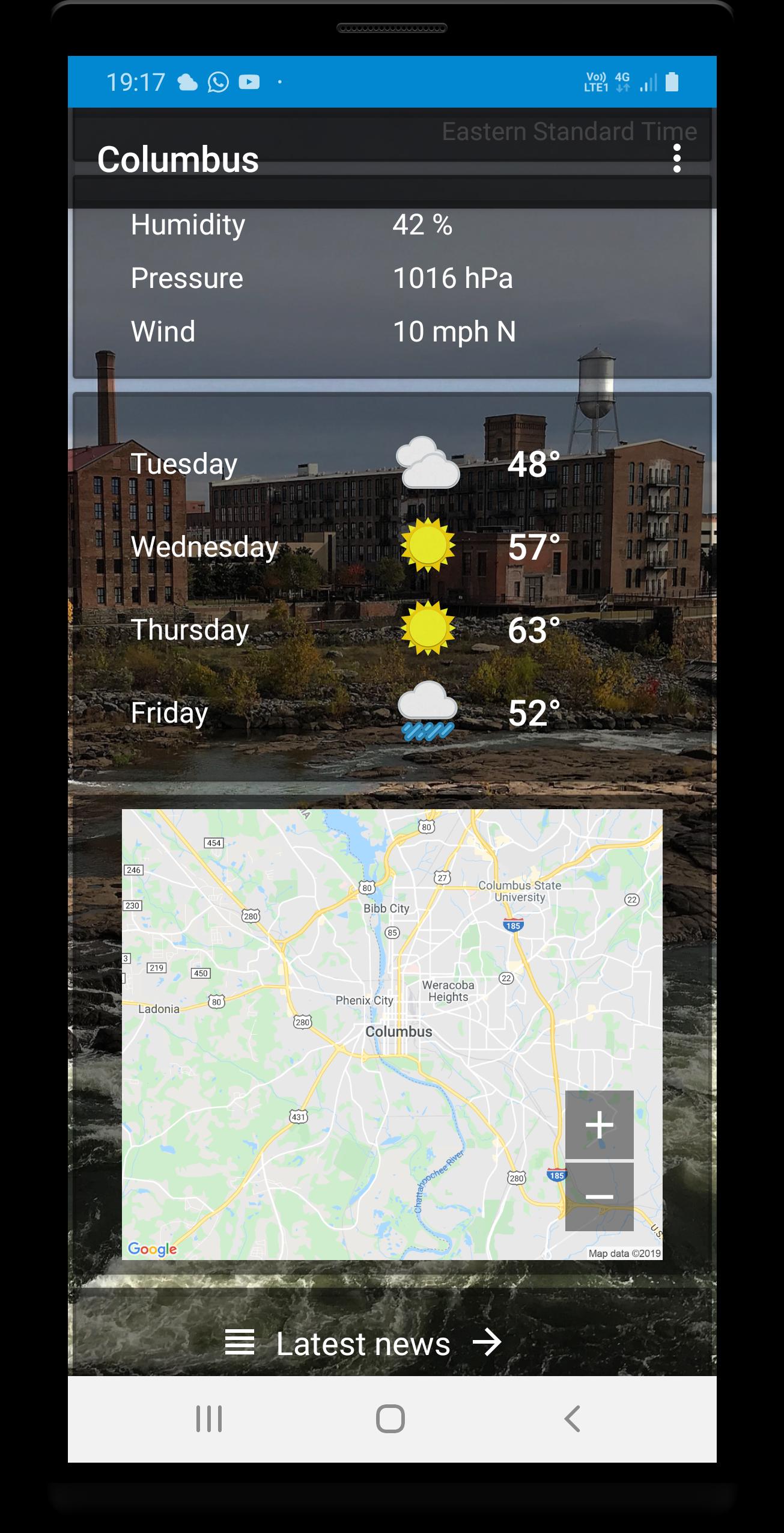Columbus, Georgia - 온도, 풍속, 습도, 기상 조건, 강수량, 압력 등을 포함한 5 일 일기 예보